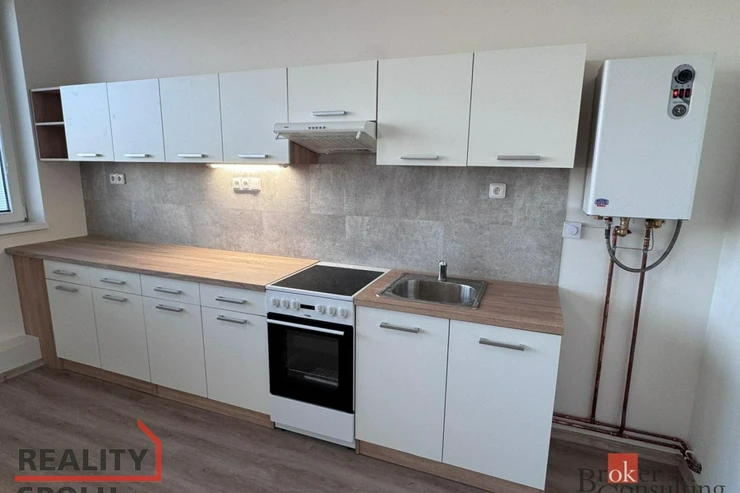 Byt prošel kompletní rekonstrukcí – nové podlahy, výmalba, elektroinstalace, sanita i kuchyňská linka.