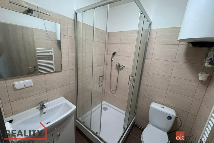 Byt se skládá z prostorného obývacího pokoje s kuchyňským koutem, který nabízí dostatek místa pro posezení, relaxaci i jídelní stůl. Moderní kuchyňská linka je vybavena elektrickým sporákem s troubou, digestoří a přípravou pro lednici. Dále je k dispozici samostatná ložnice s dostatkem prostoru pro postel i šatní skříň nebo komodu. Koupelna je vybavena sprchovým koutem, umyvadlem a toaletou v moderním a udržovaném stavu.