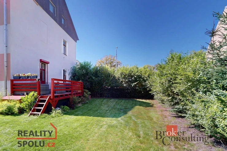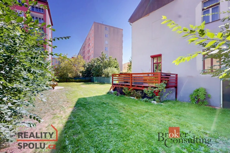 Nedílnou součástí bytové jednotky je zahrada, která náleží pouze k této bytové jednotce, je oplocena a užívat ji lze pouze společně s bytovou jednotkou. Nabízí parkovací místo pro dvě auta s vjezdem přes zahradu patřící k jiné bytové jednotce, což je zajištěno věcným břemenem.