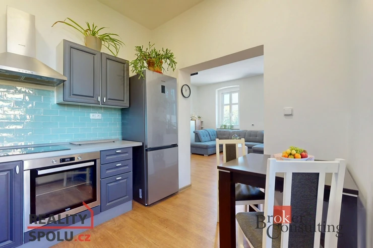 Bytová jednotka je součástí domu se třemi bytovým jednotkami, přičemž tato bytová jednotka se nachází v přízemí a disponuje prostornou terasou a samostatnou oplocenou zahradou o výměře 435m2. Vstup na zahradu je přímo z terasy, přístup do bytu je z terasy i společné chodby v domě. Dispozičně nabízí bytová jednotka větší obývací místnost, která je propojena s kuchyňským koutem, a ložnici. Útulnost obývacího pokoje skvěle dotváří stylová kamna, ve kterých je možné v chladnějším období v roce topit dřevem a zároveň mohou sloužit i jako ploténka na vaření. Koupelna je vyřešena velmi jednoduše a prakticky, nabízí vanu se sprchovou zástěnou, ale i prostor pro pračku a sušičku, které jsou součástí bytové jednotky. Ložnice je orientovaná na západ, obývací pokoj na západ i sever a koupelna na východ.