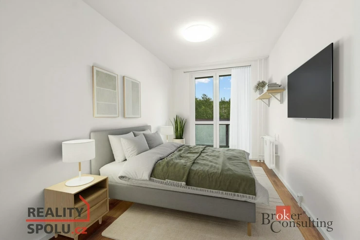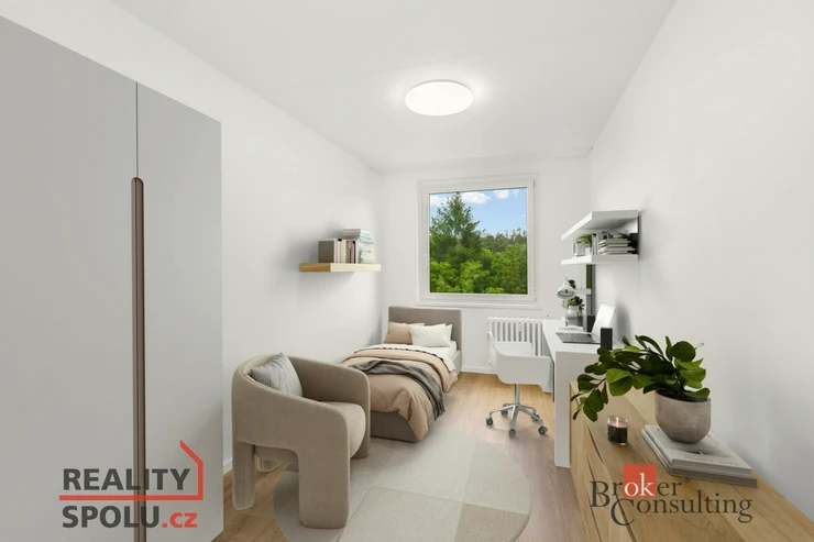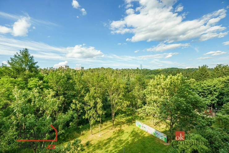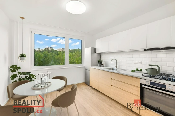Byt je světlý, funkčně řešený, s pěkným výhledem.