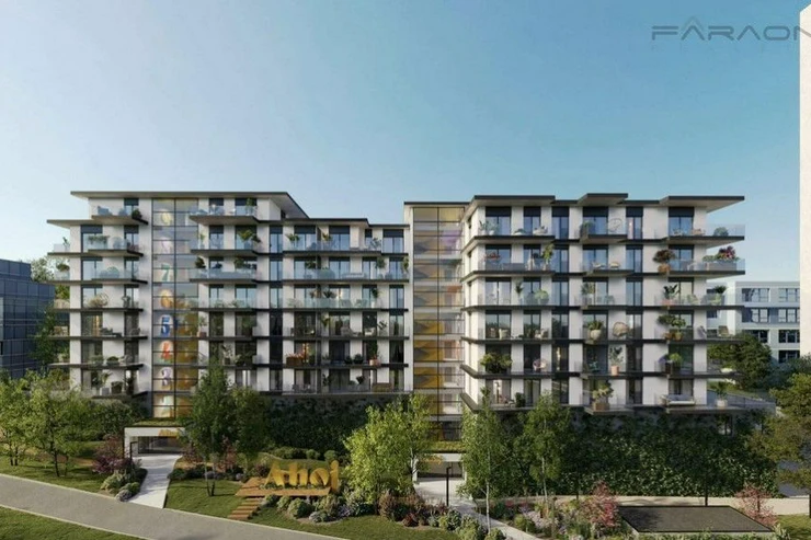 Sale of a 3+kk apartment (78.9 m2) with two balconies (15 m2), cellar (2.5 m2), air conditioning, underground parking, charging stations for electric cars and a view of the countryside. A fully equipped fitness center, spa and wellness area with a Finnish sauna (falling ice chips for cooling, showers and a bucket of cold water) and a steam bath, an 18-meter long glass-enclosed pool, relaxation room, rooms with massage beds and whirlpools located next to the pool. For families with children, a children's club will be located right in the building.