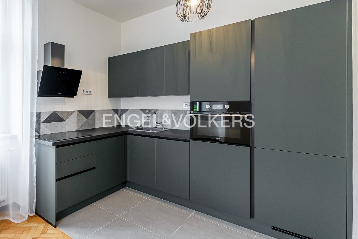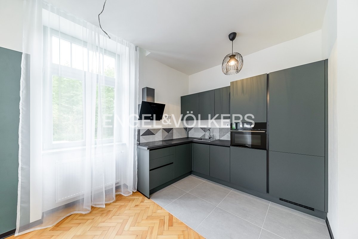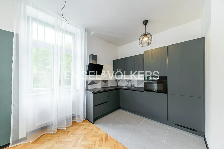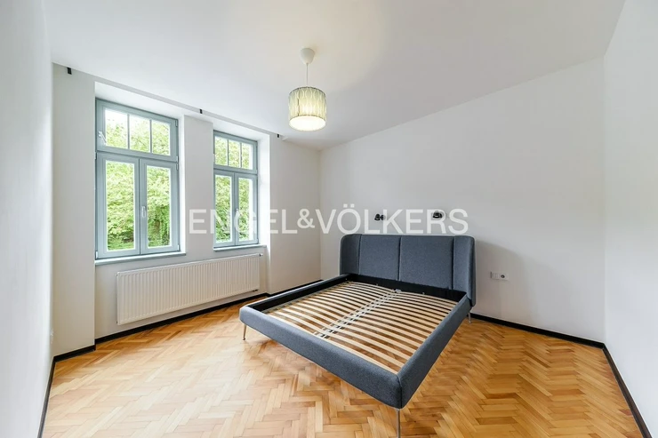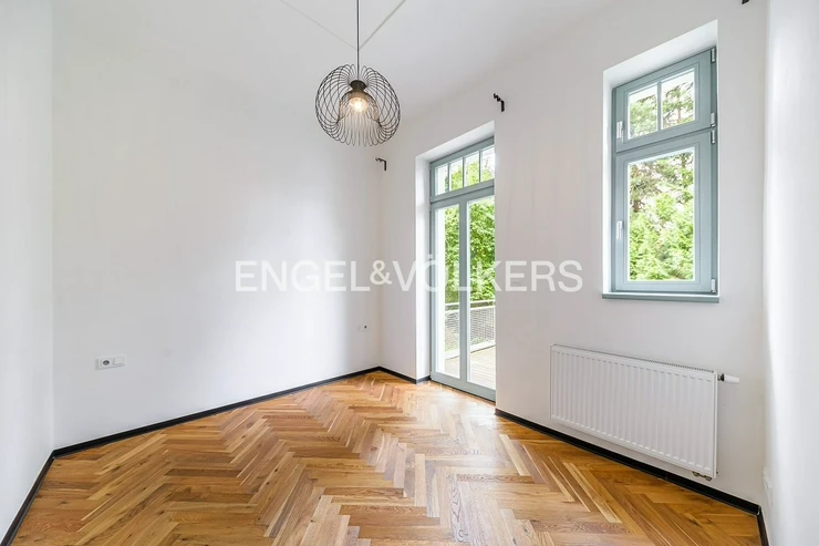 The heart of the apartment is a living room with a new kitchen, and two bedrooms - one of which has access to the balcony, a bathroom with a shower and a hallway. The apartment has high ceilings and acknowledged original features such as original interior doors, original reconditioned or new parquet floors and new wooden insulating windows.