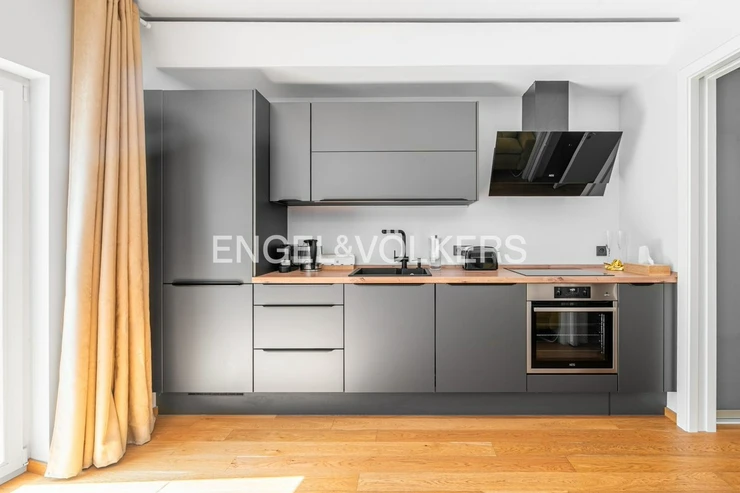 The interior of the apartment is equipped with a custom designed kitchen with quality built-in appliances, three-layer oak flooring, wooden windows with double glazing. Comfort is enhanced by underfloor heating throughout the apartment. The apartment has a brick cellar of 2.5 sqm. Parking space directly in the residence can be purchased.