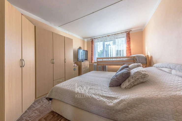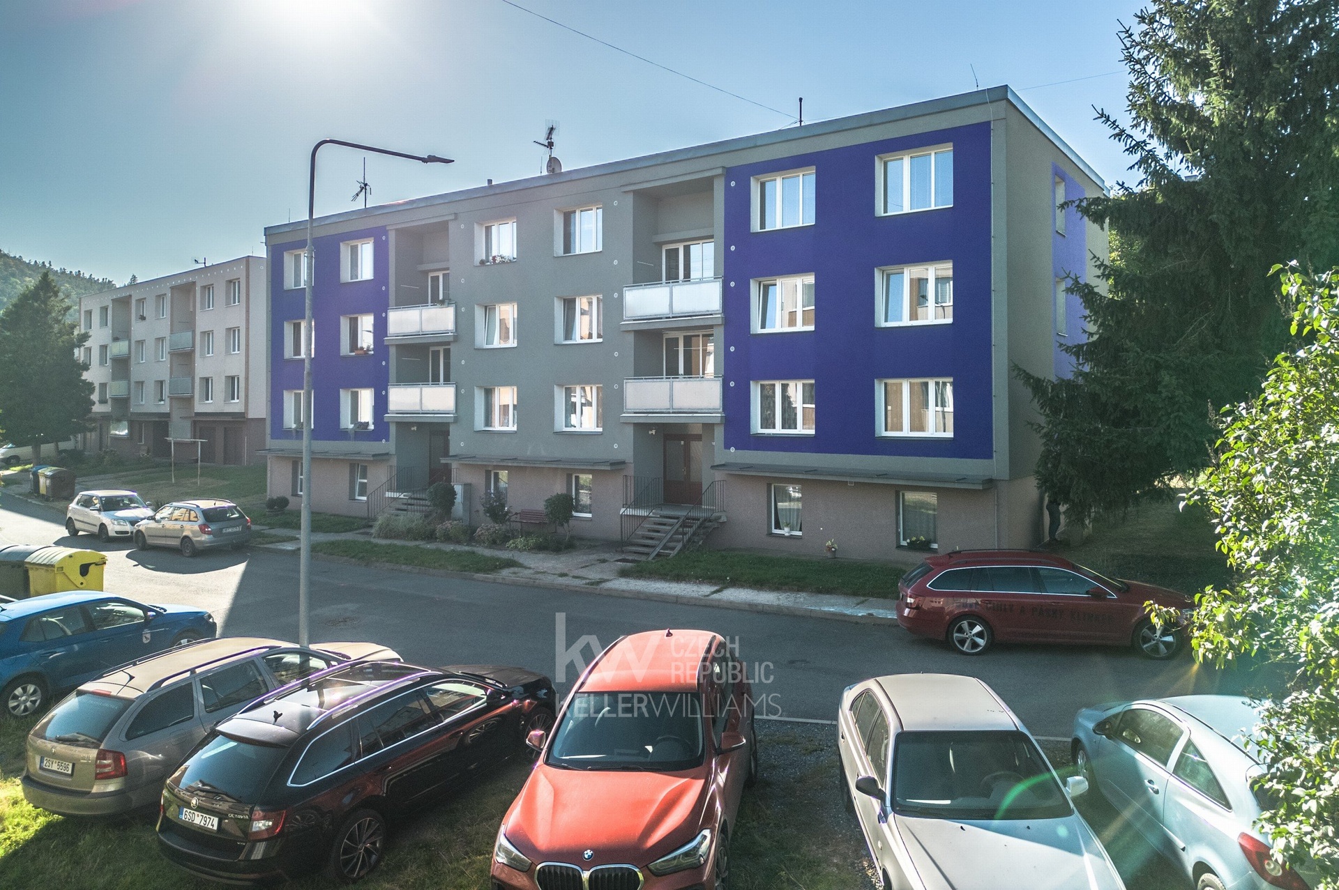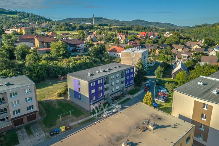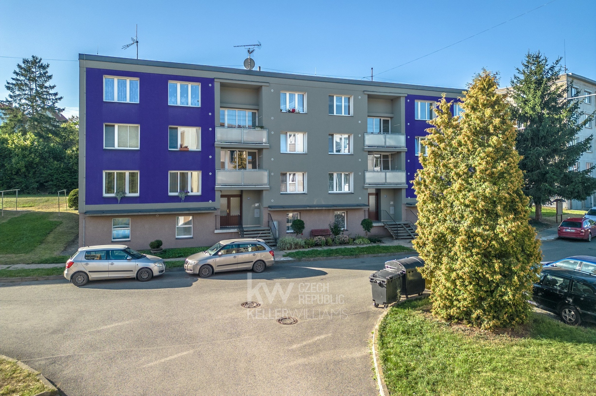 Byt je situován ve druhém (a zároveň posledním) patře menšího bytového domu bez výtahu. Dispozice bytu je velmi praktická – najdete zde prostorný obývací pokoj, samostatnou neprůchozí ložnici a kuchyň s jídelním koutem.