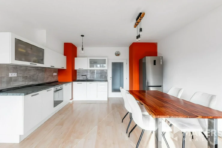 The apartment with a total area of 97.7 m², including 83.5 m² of floor space and 14 m² of balconies, is located in the newly built residential complex Tulipa Třebešín – a pleasant and quiet neighborhood with plenty of greenery and excellent transport accessibility.