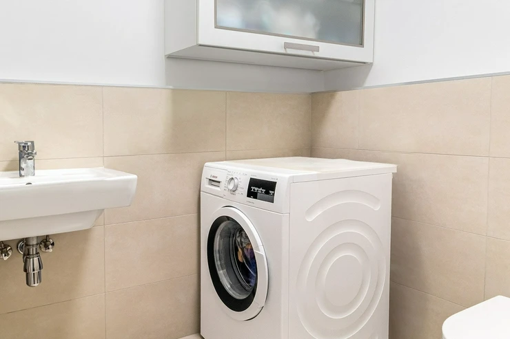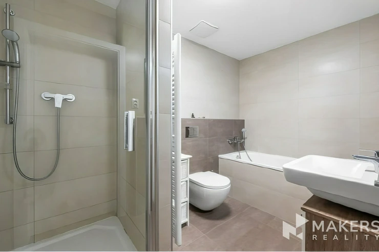 The apartment offers two cozy bedrooms – the master bedroom (12.4 m²) is ideal for a double bed and built-in wardrobe and features private access to the second balcony (4 m²), which faces west. The second bedroom (12.6 m²) is perfect as a children’s room or home office.