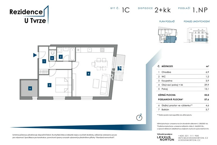 This 57.6 sqm one-bedroom apartment with a balcony (3.7 sqm), cellar, and garage parking space is located on the first floor of the Rezidence U Tvrze building in Malešice. This intimate project combines cutting-edge technology, comfortable living, and a peaceful environment surrounded by greenery.The main living area offers plenty of space for a kitchenette and living area and direct access to the balcony. The bedroom has space for wardrobes and storage elements. The bathroom with bathtub and separate toilet feature a modern design with stone-effect plaster and black Mexen Cube faucets.The standard includes high-quality materials and modern technology: the energy-efficient SMARTPANEL system ensures an optimal microclimate, while underfloor heating in all living areas guarantees maximum comfort. Aluminum windows with triple glazing provide excellent thermal insulation and acoustic properties. Ventilation with central heat recovery and CO₂ control ensures a constant supply of fresh air. The TapHome smart home system allows remote control of heating, lighting, and security.The Malesice neighborhood offers an ideal combination of a peaceful environment full of greenery and all civic amenities. Malesice Park, the botanical garden, and Smetanka Nature Park are all nearby. Restaurants, cafés, the Oaza Malesice shopping center, kindergartens, and elementary schools are all within easy reach. You can get to the center of Prague quickly and easily—the Malesicke namesti bus stop is only 500 meters away, and a direct connection will take you to the Skalka metro station in just seven minutes. You can reach the center of Prague in 30 minutes. Further development of public spaces and transport infrastructure is planned for the area in the future, including a new cycle path on the site of the original viaduct, which will connect Malesice with the wider network of Prague cycle routes.