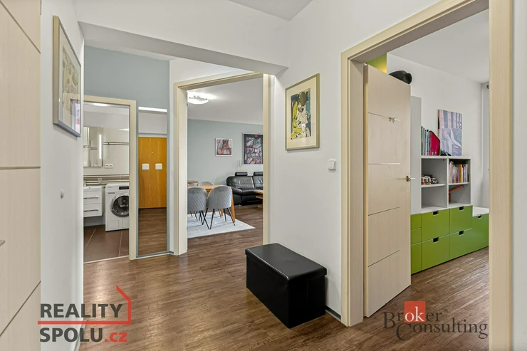 Byt se prodává včetně kvalitního vybavení v jednotném designu, takže se můžete rovnou nastěhovat. K bytu patří sklepní kóje a je možné převzít i pronájem krytého parkovacího stání přímo v domě.