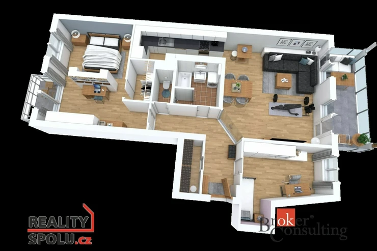 Byt byl ve spolupráci s developerem a bytovým architektem navržen tak, aby splňoval i ty nejnáročnější požadavky. Najdete zde: