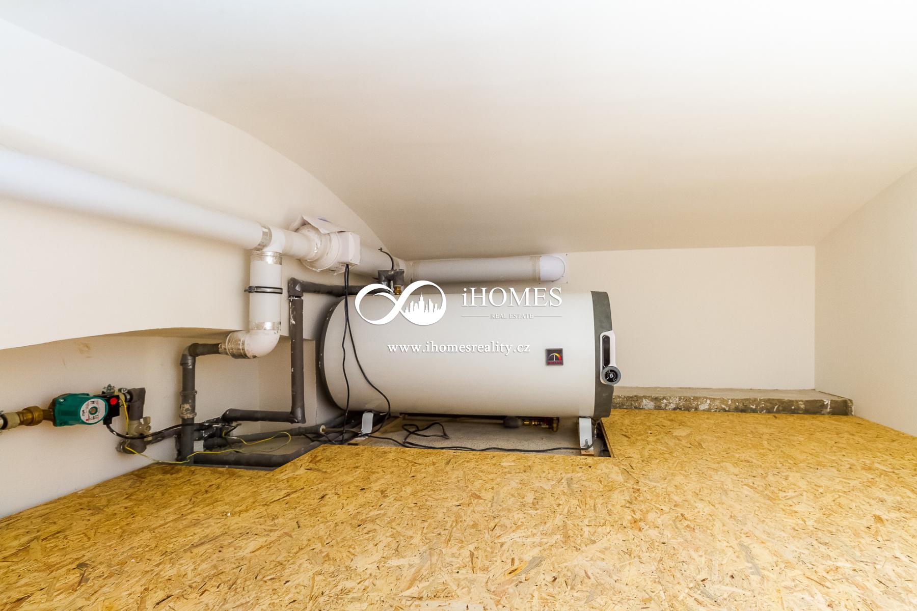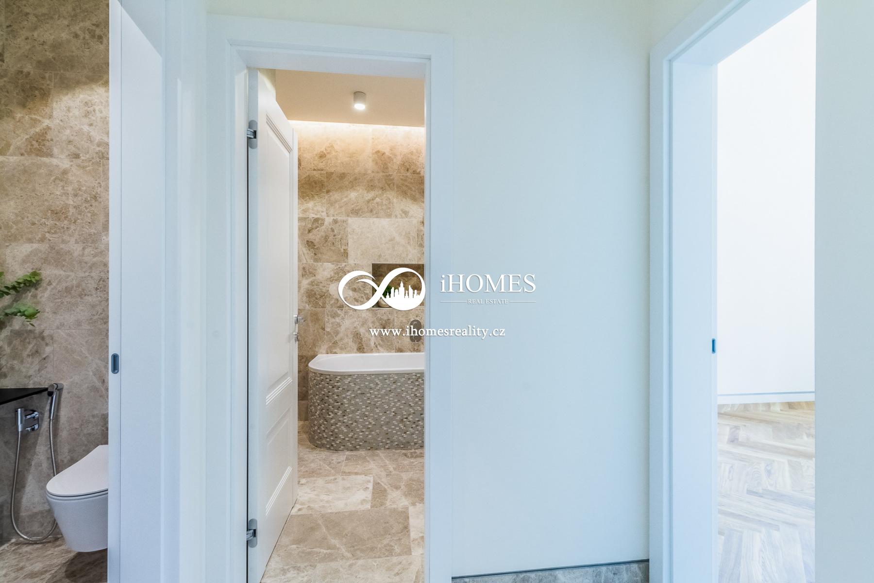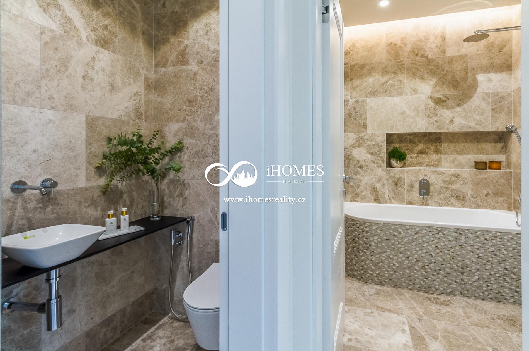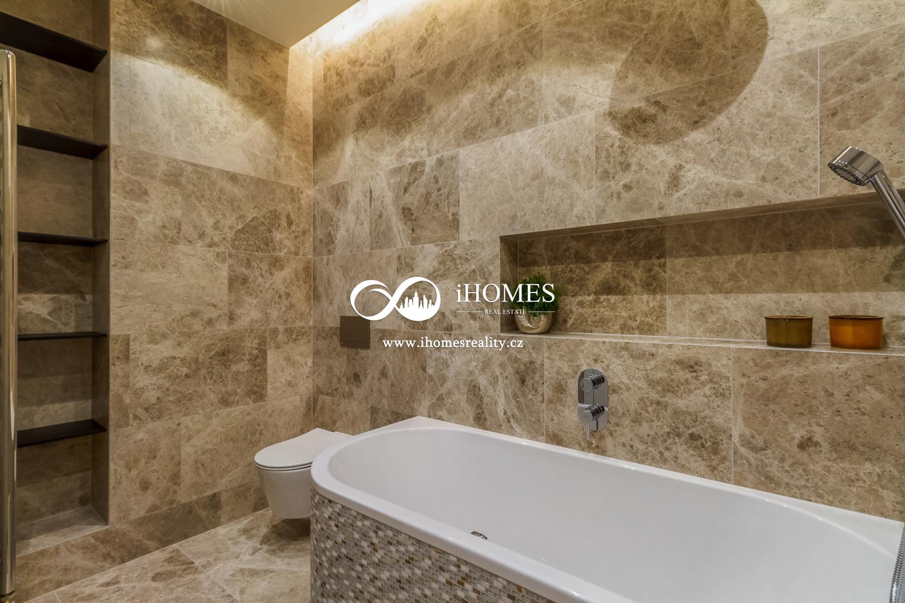 Floors: silver-veined marble (INTERIER STONE) and oak parquet (BOHEMIA Exclusive). Heating: water-based and electric underfloor heating throughout the apartment (REHAU + DELTA) Plaster: walls and ceilings finished with lime-cement plaster (Sakret) and skim coat (Stemex) Doors: security, fire-resistant, soundproof panel doors, class 3+ (Adlo), interior doors (Profidoors) Casement windows (Okna Langer), lighting (Rendl Light Studio), 200-liter horizontal water heater (Dražice)
