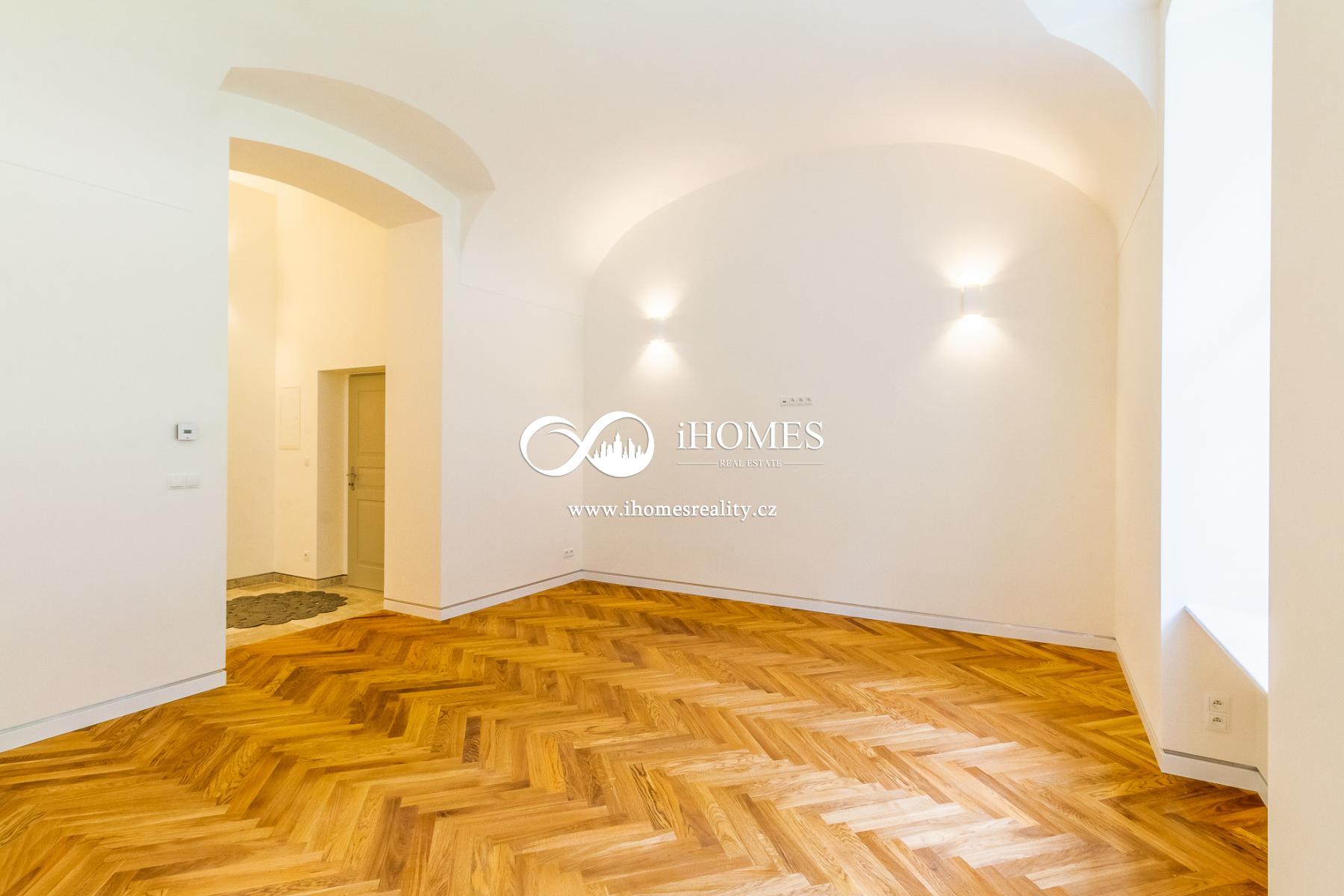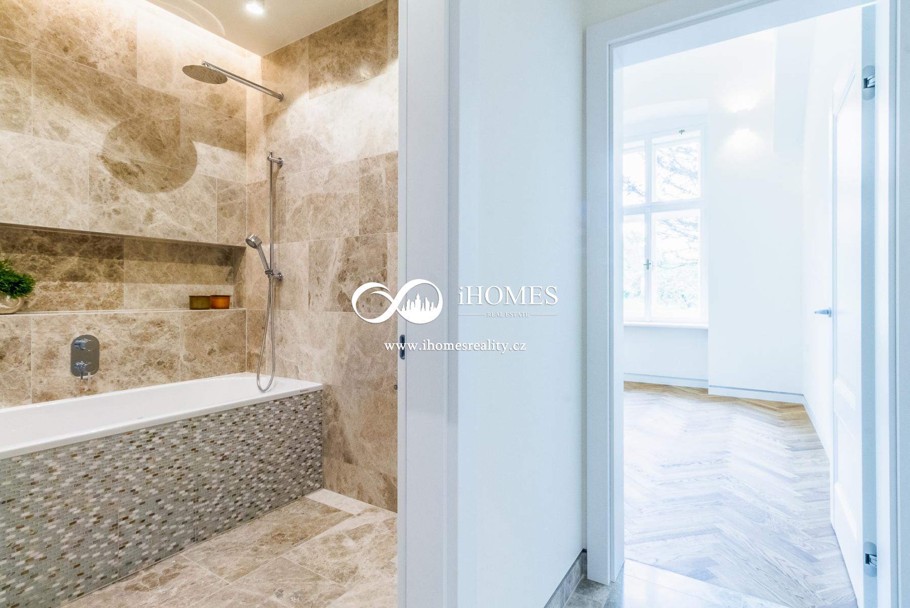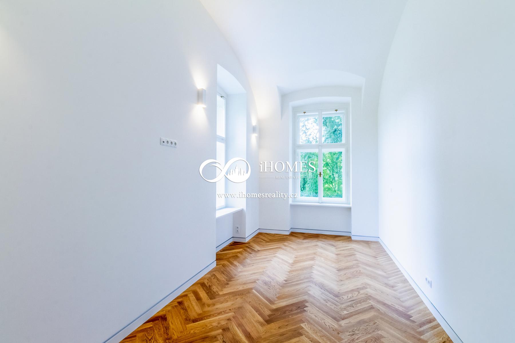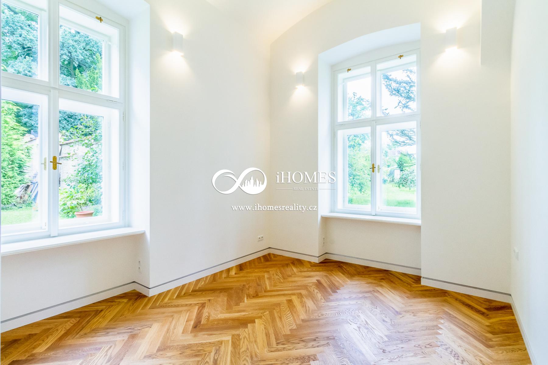 iHomes Real Estate is exclusively offering for sale a luxurious 3-bedroom apartment measuring 109.6 m and sup2; in the city of Kladno. This fully renovated apartment is located in a well-preserved historic building in the quiet neighborhood of Kladno-Vrapice.