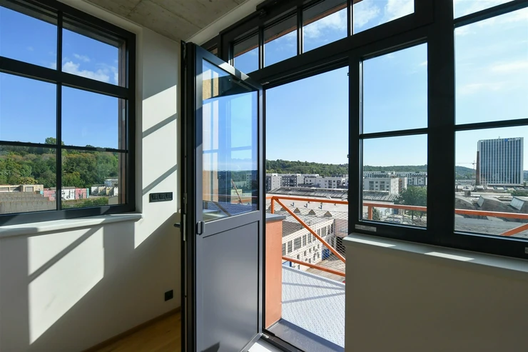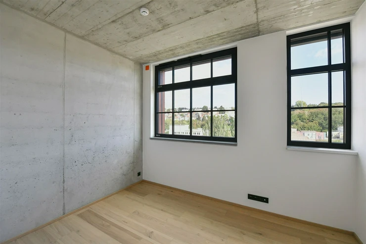 The architecture of the building sensitively refers to the industrial history of the place and creates the impression of a work of art. A terrace or balcony on each floor significantly expands the living area of the apartment, offering not only a pleasant outdoor seating area but also a functional space for various uses.