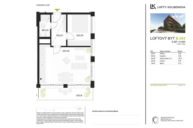 Are you dreaming of a home in an exclusive, rapidly developing area with quality, timeless living space? A cleverly designed 2+kk apartment with a large balcony and parking right in the apartment building, within walking distance of the subway, is the right choice. Apartments with a 2+kk layout in our building start at a price of 9,805,000 CZK.