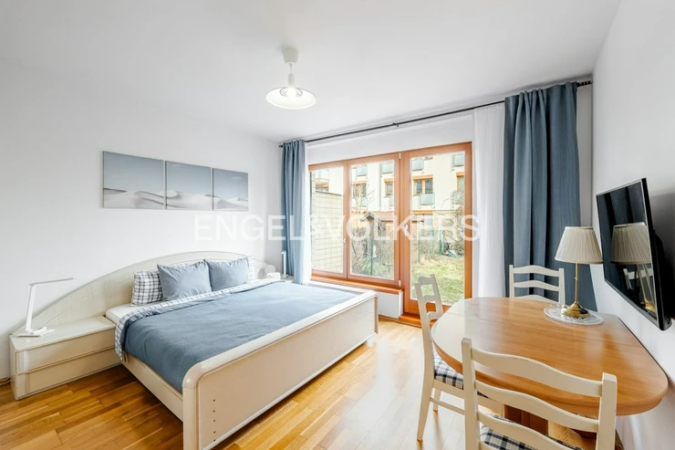 The apartment offers a generous living room that features an open space overlooking the garden. Plenty of light is also offered by the window in the kitchen, which is located above the kitchen counter. Both bedrooms have large French windows that lead out to the garden perfect for relaxing and unwinding.