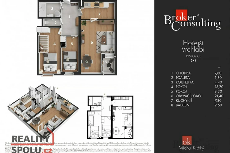 Nabízíme k prodeji prostorný a plně vybavený apartmán o dispozici 3+1 a velikosti 70 m² v moderním Resortu v srdci Krkonoš. Součástí je sklep (5 m²) a široká škála služeb a komfortního zázemí přímo v domě. K apartmánu je nutno dokoupit 2x parkovací stání přímo v objektu za 500.000,- .