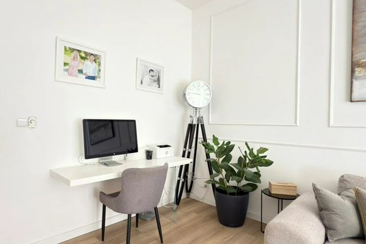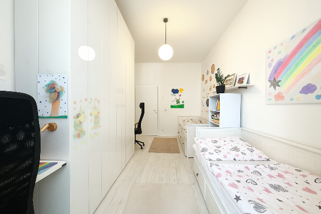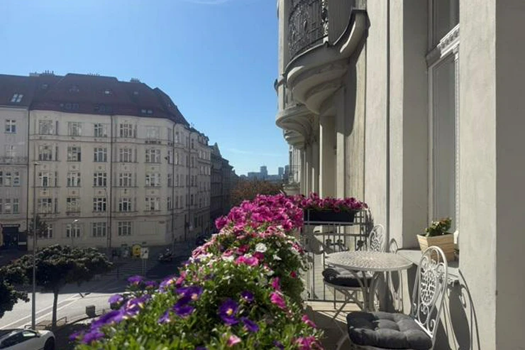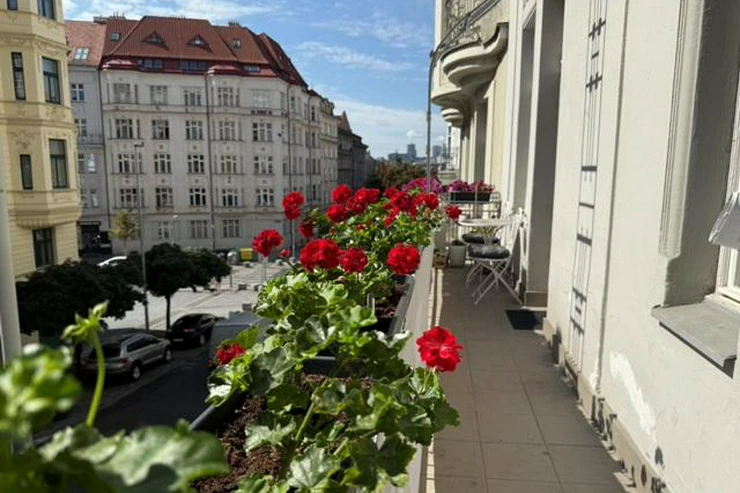 Byt je orientován na jihovýchod a západ, což zajišťuje dostatek denního světla a příjemnou atmosféru po celý den. Byt má nádherné vysoké stropy, které vám dávají pocit vzdušnosti a většího rozměru bytu. Prostorný obývací pokoj se vstupem na balkón a velkou kuchyní na míru s velkým jídelním stolem, dostatkem úložného prostoru a vstupem také na balkón. Dvě samostatné ložnice jsou vybaveny designovým nábytkem Lago. Hlavní ložnice s výhledem do klidného vnitrobloku nabízí místo pro odpočinek. Koupelna je navržena v moderním, nadčasovém stylu se sprchovým koutem. K dispozici je také samostatná toaleta. Součástí bytu je sklep o ploše 12 m, který poskytuje dostatek prostoru pro kola a zimní věci.