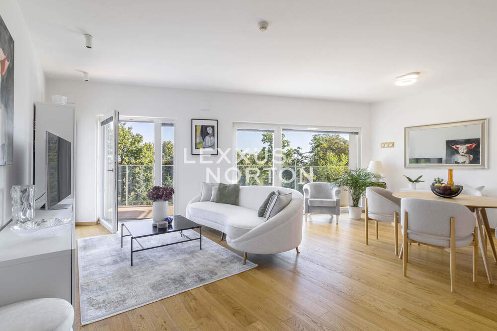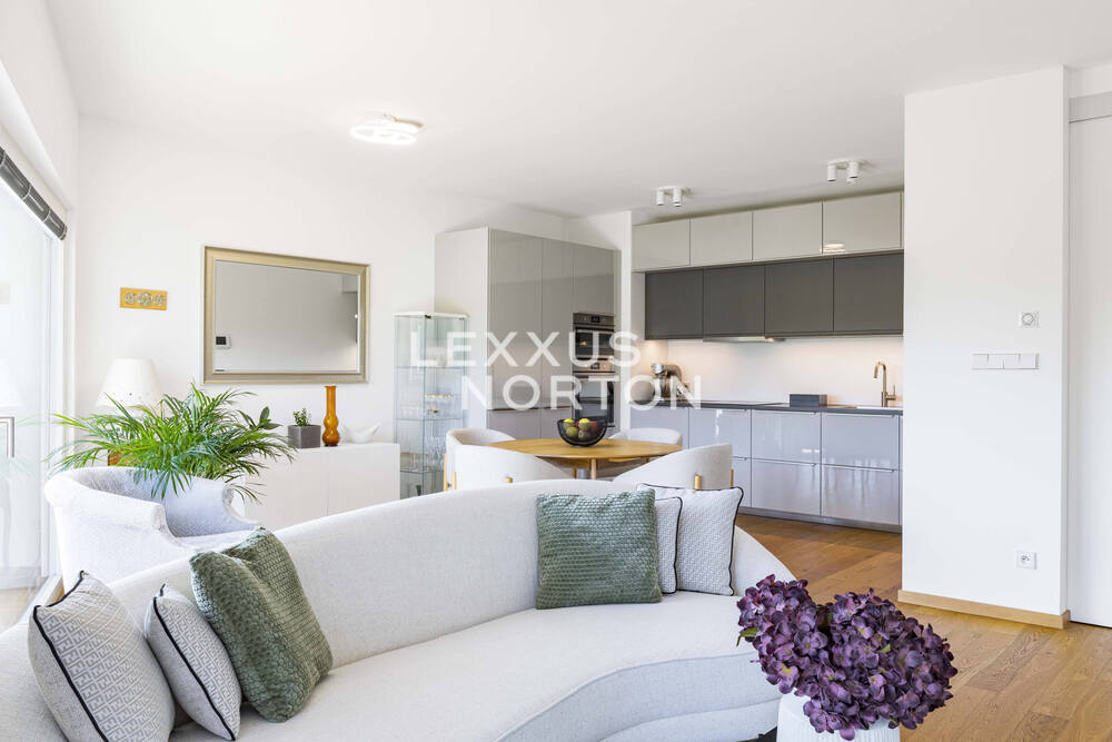 We are delighted to present an exceptional 1-bedroom apartment with a floor area of 79 sqm, located on the 2nd floor of the modern Vitality Residence in the sought-after district of Prague 5 – Smíchov, Kobrova Street. This elegant property combines the comfort of contemporary city living with the serenity of greenery in the prestigious Sacré Coeur area, one of the most charming historic quarters of Prague 5.The apartment boasts a 12.6 sqm balcony with panoramic views of the Sacré Coeur gardens and the adjacent park, as well as a cellar unit and private garage parking. The interior is designed with attention to both comfort and timeless elegance: a spacious entrance hall, guest bathroom, a bright living room with an open-plan kitchen and direct access to the balcony, a bedroom, and a second bathroom with a shower. Premium features include underfloor heating and bathrooms fitted with Villeroy & Boch designer sanitary ware.Vitality Residence offers its residents not only 24/7 reception and a high level of privacy but also exclusive on-site facilities such as a private gym and a residents’ lounge perfect for private events or social gatherings.The Sacré Coeur location represents a unique blend of historic atmosphere and modern lifestyle. In the immediate vicinity, you will find expansive parks, a French school, shopping and entertainment at Nový Smíchov, and excellent transport connections with the Anděl metro station within walking distance. This area combines peaceful surroundings with greenery, full urban amenities, and fast access to the city center.