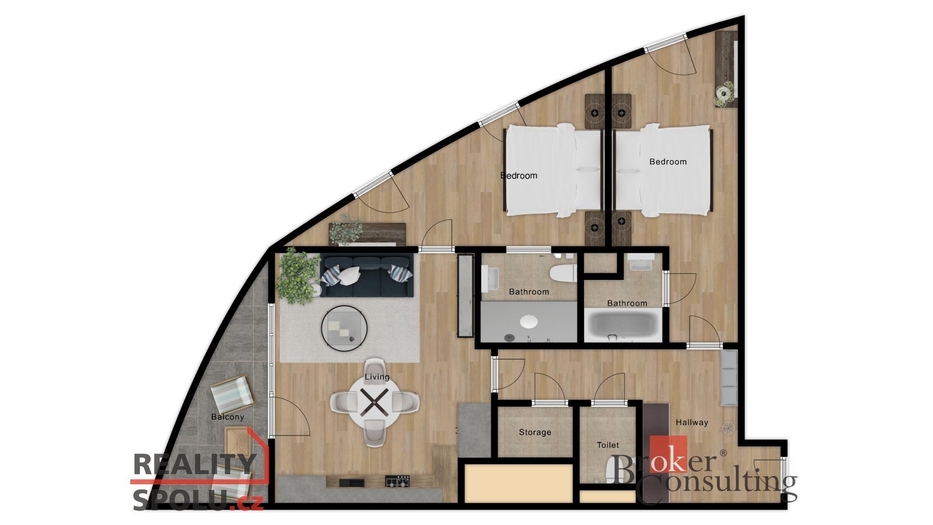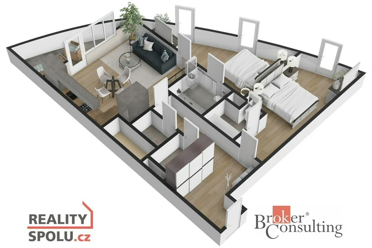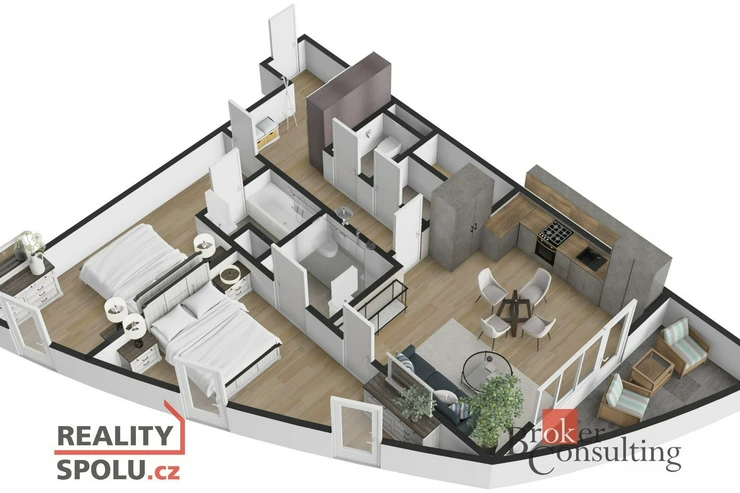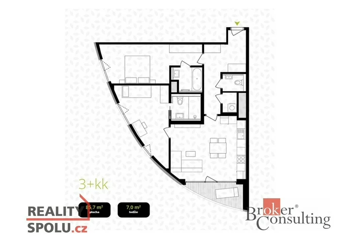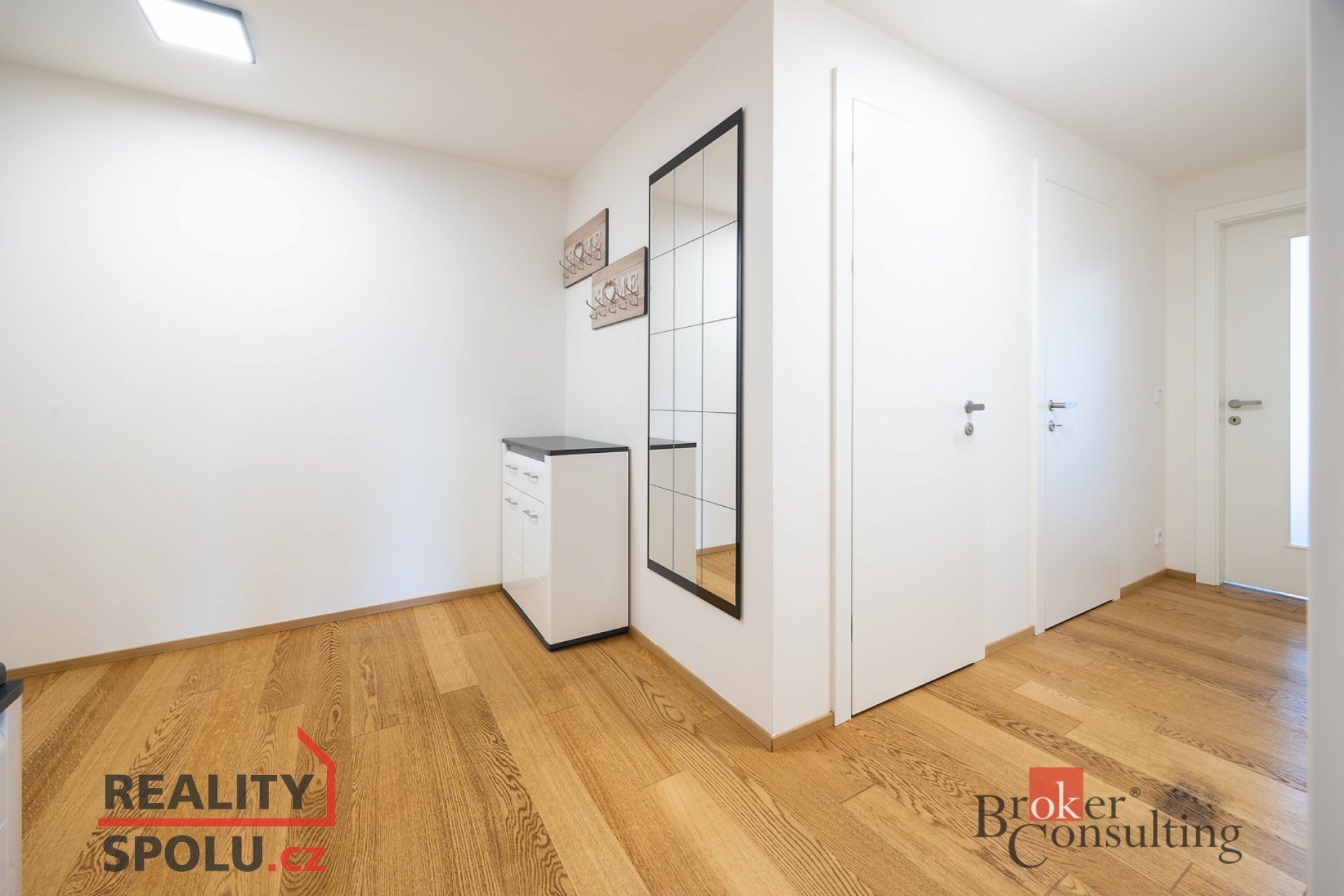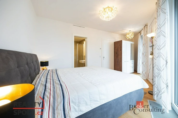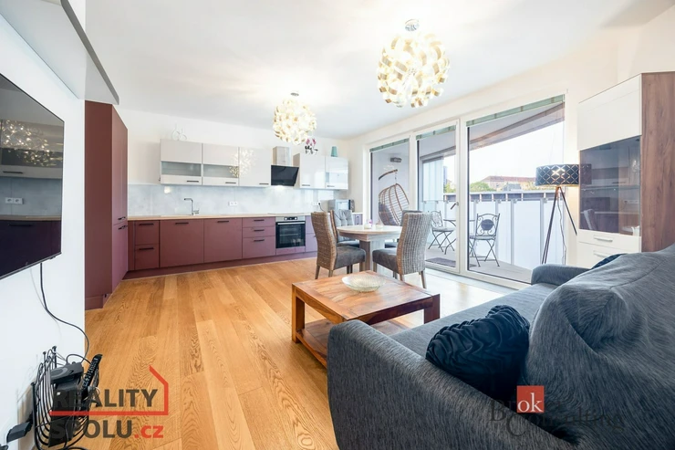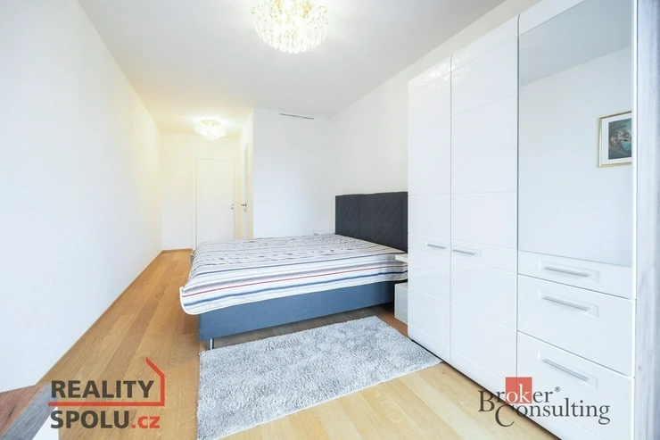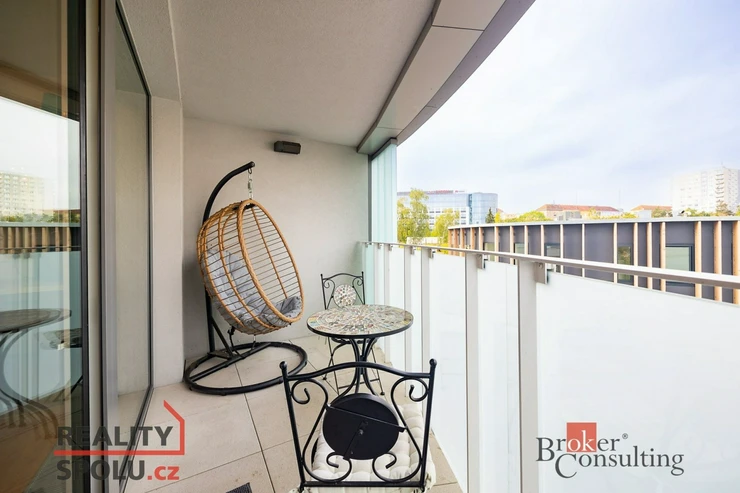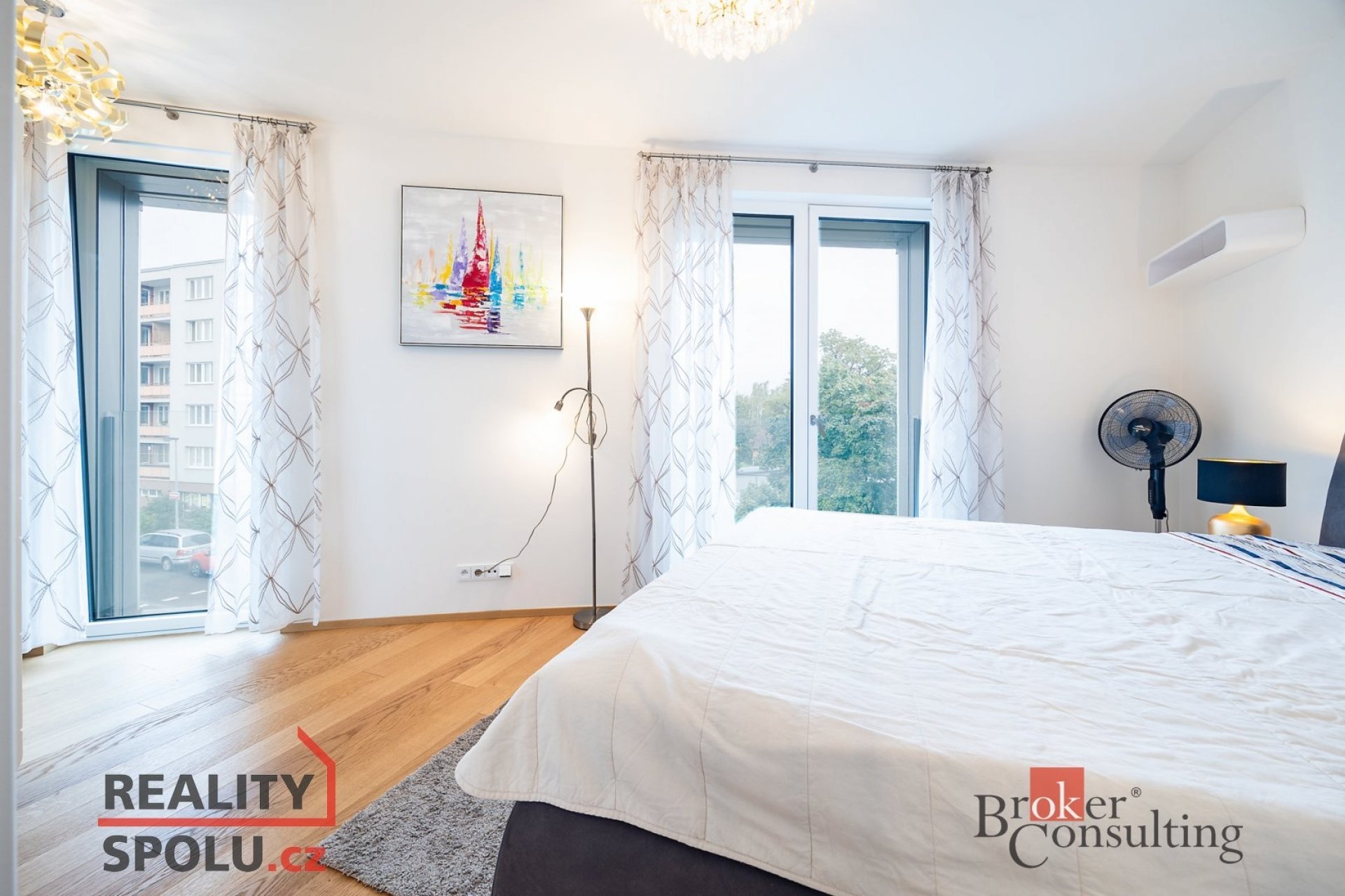 Exkluzivně nabízíme k prodeji luxusně zařízený byt s dispozicí 3kk s lodžií a sklepem v projektu Oliva v Hodoníské ulici v pražské Michli. Byt má užitnou plochu 86m2 a nachází se ve 3. podlaží z cekových 8 nadzemních. Dispozice bytu sestává z prostorné haly, kompletně vybavené kuchyně propojené s obývacím pokojem a jídelnou, dvou ložnic, dvou koupelen, WC, lodžie a komory. Lodžie o velikosti 7m2 je je přístupná přímo z obývacího pokoje. Byt je vybaven ve vysokém standardu, který zahrnuje kvalitní dřevěné podlahy, podlahové vytápění, špičkové zařizovací předměty, dřevěné dveře s bezfalcovými obložkovými zárubněmi a hliníková okna s izolačním trojsklem a žaluziemi. Orientace bytu je na severozápad směrem do klidné části Parku Brumlovka. Designově atraktivní Rezidence Oliva s elegantním atriem a panoramatickými výtahy byla zkolaudována v roce 2022 a nabízí velmi moderní bydlení v zeleni nedaleko metra Kačerov a administrativního a rekreačního centra Brumlovka. Budova je velmi úsporná a disponuje energetickou třídou B díky centránímu vytápění a řízené rekuperaci vzduchu. Celá budova je zároveň bezbariérová. K bytu náleží prostorný sklep o velikosti 6m2 v suterénu budovy. Zároveň je možné k bytu dokoupit parkovací stání v podzemní garáži za Kč 750.000,- Vážným zájemcům tento moderní, světlý a úsporný byt doporučujeme byt k osobní prohlídce.