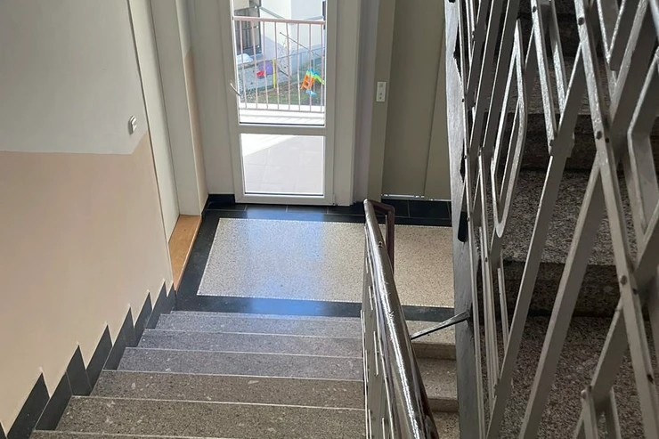 The apartment also includes a large cellar of 9 m², ideal for storing seasonal items and sports equipment. There is a small balcony right at the entrance to the apartment.