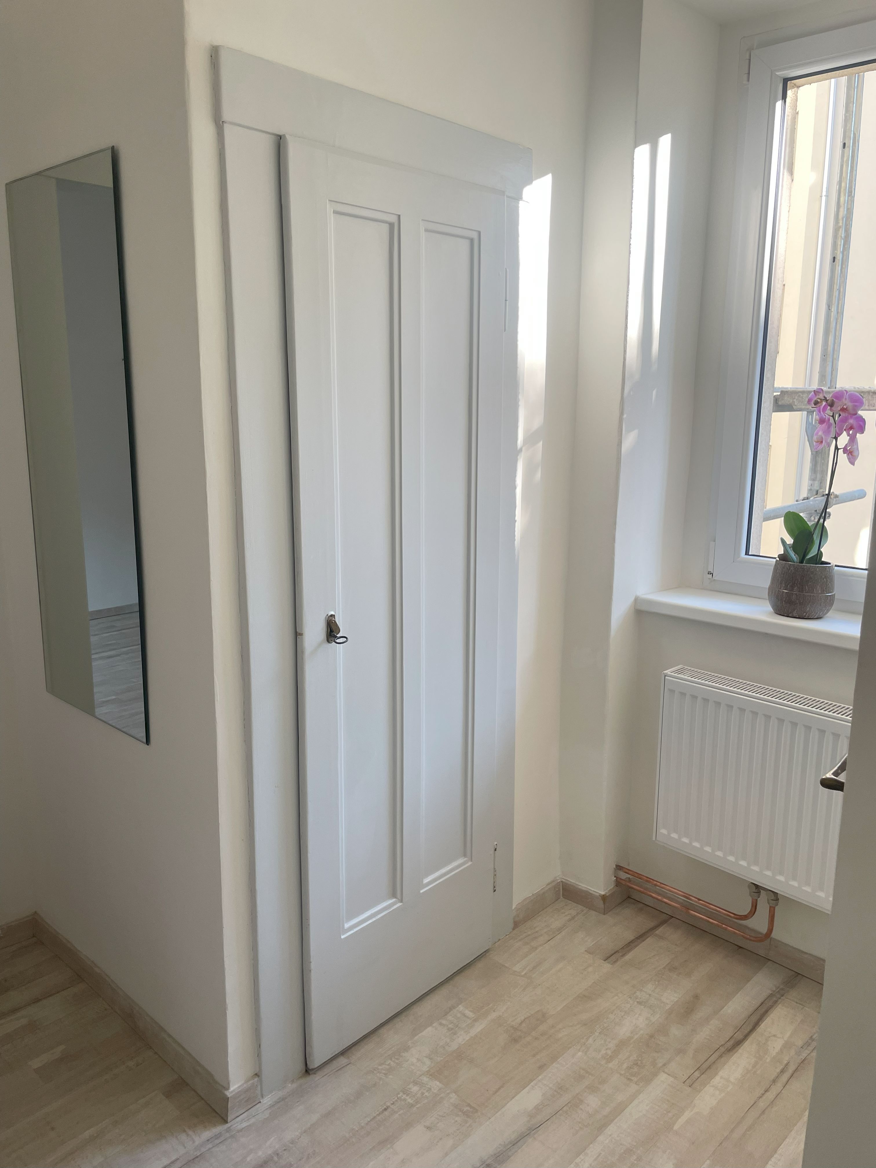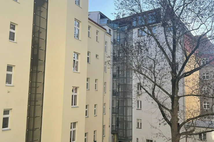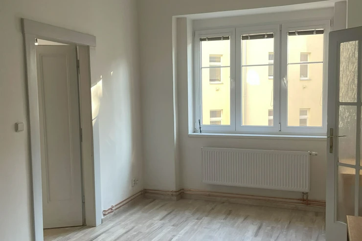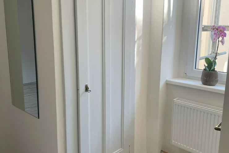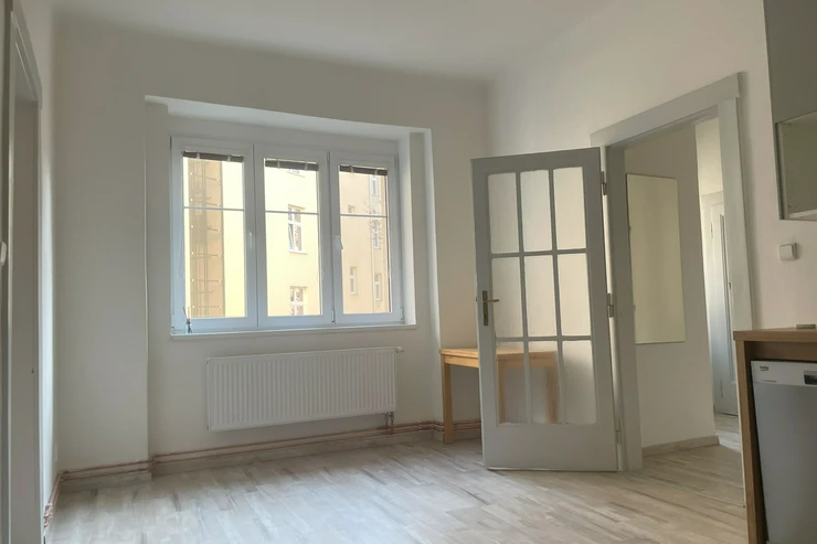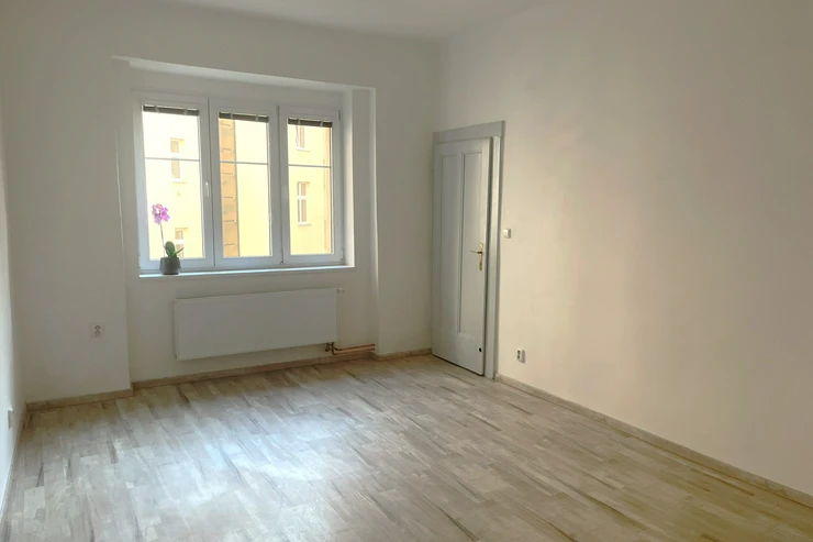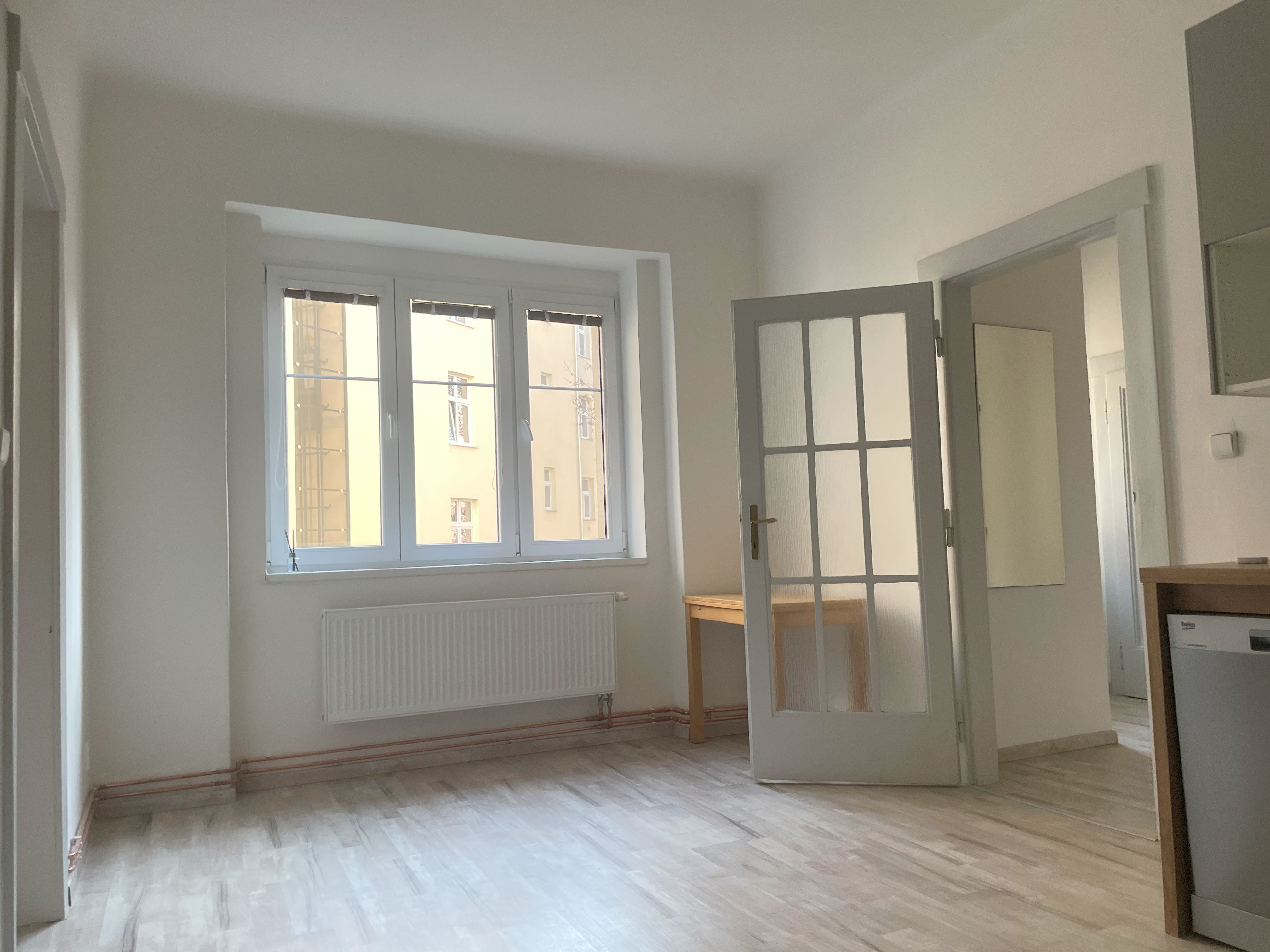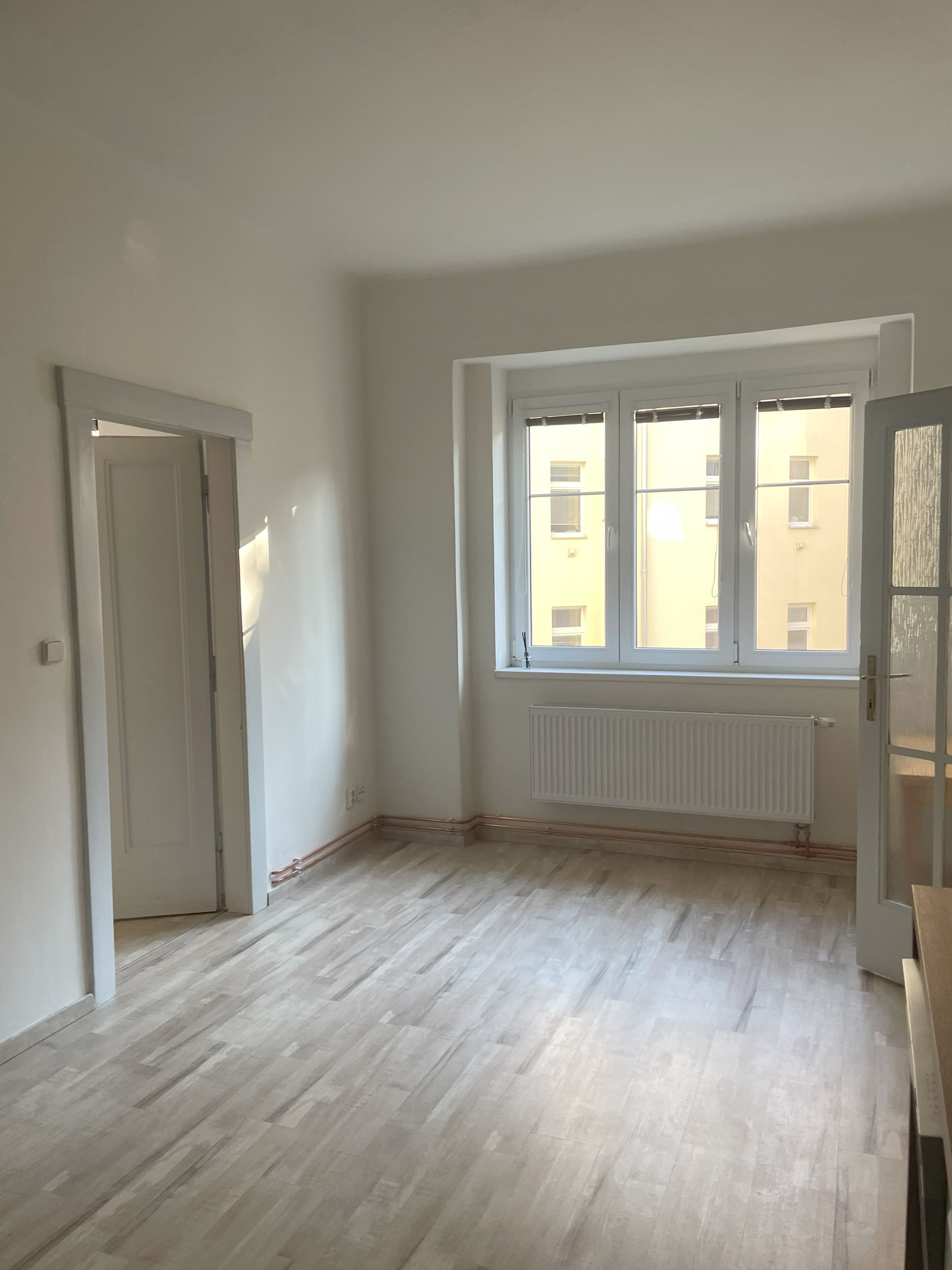 We would like to introduce you to this beautiful apartment located on a quiet street in the center of Prague, close to the metro. The apartment is privately owned in Prague. This 2+kk apartment is located in a clean and well-maintained brick building on the third floor with an elevator. The total floor area is 50 m² with high ceilings, ensuring comfortable living. The windows face south into a quiet courtyard with a shared garden.