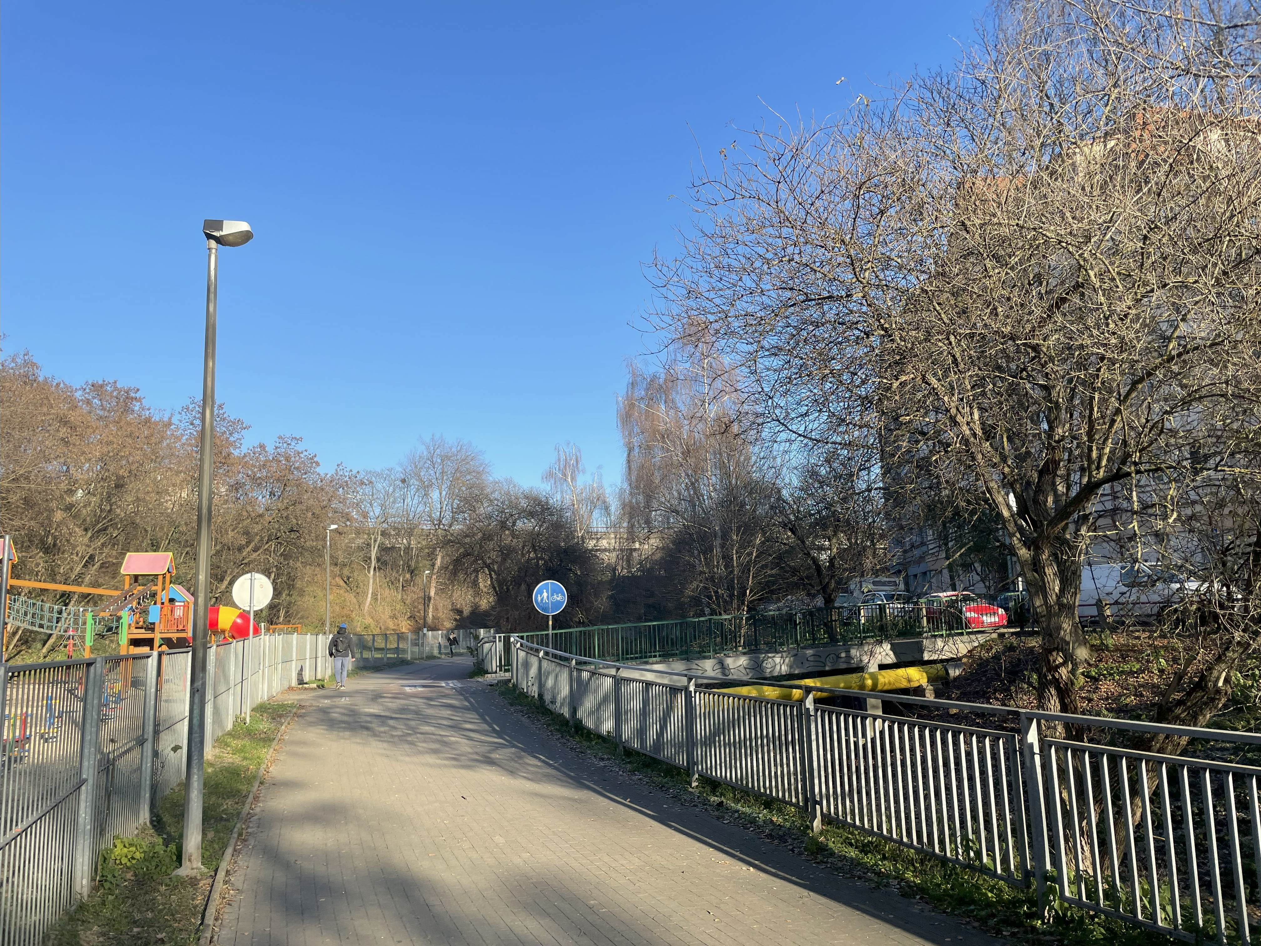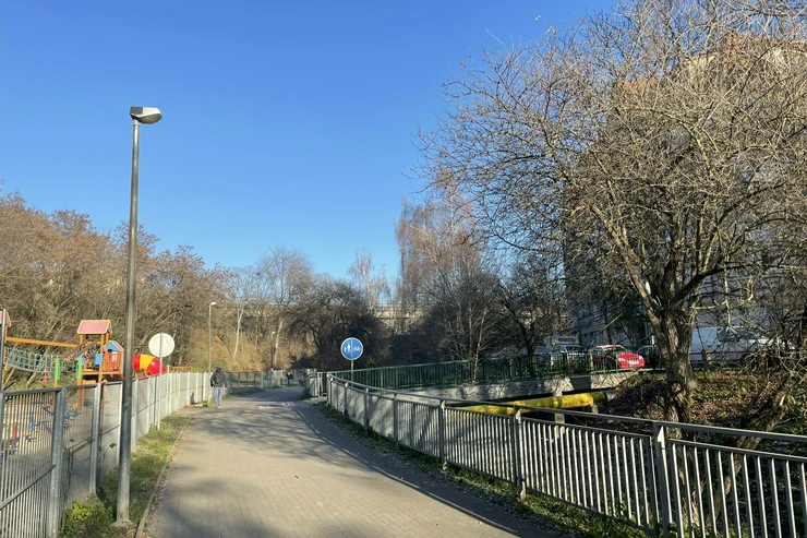 Na Rokytce Street is quiet, yet with good transportation access and parking. The cycle path in front of the building takes you to the Old Town and Holešovice in about 10 minutes, Troja in 15 minutes, and Vysočany in 5 minutes.