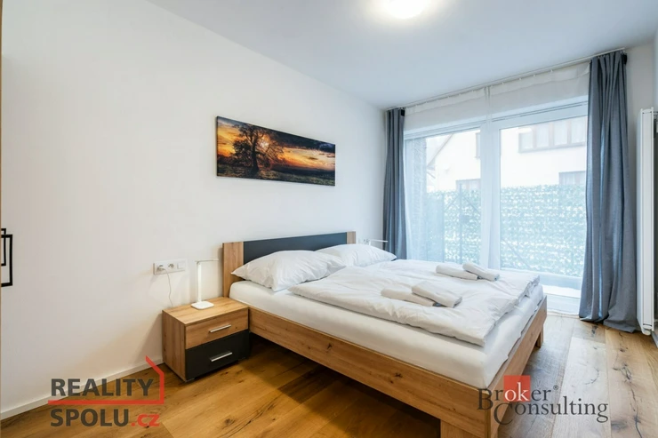 Kolaudace bytového domu proběhla v roce 2024. Byt je připraven k okamžitému předání. Dispozičně nabídne obývací pokoj s kuchyňským koutem, dvě samostatné ložnice. Koupelna disponuje walk in sprchou, samostatné WC. Všechna okna jsou připravena na osazení elektrických venkovních rolet na dálkové ovládání. V koupelně je vymezen prostor pro dokončení sauny případně je možné dobudovat vanu.