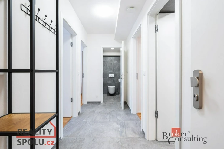 Kolaudace bytového domu proběhla v roce 2024. Byt je připraven k okamžitému předání. Dispozičně nabídne obývací pokoj s kuchyňským koutem, dvě samostatné ložnice. Koupelna disponuje walk in sprchou a WC, Je zde navíc další samostatné WC. Všechna okna jsou připravena na osazení elektrických venkovních rolet na dálkové ovládání.