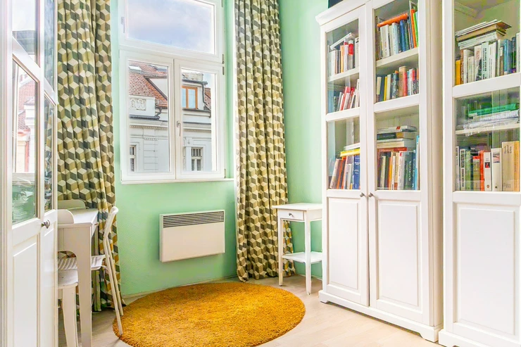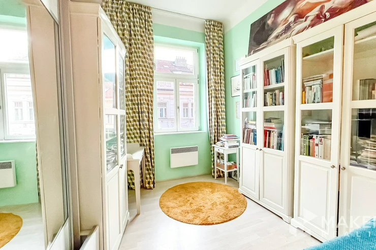 The apartment is located on Bořivojova Street in an attractive area of Prague's Žižkov, which offers complete infrastructure. In the immediate vicinity you will find restaurants, cafes, supermarkets and small shops. Transportation accessibility is excellent thanks to tram routes leading to the city center and the main railway station. The area has kindergartens and schools, sports centers and parks, including nearby Parukářka Park and Vítkov Hill, which provide pleasant opportunities for relaxation and sports activities.