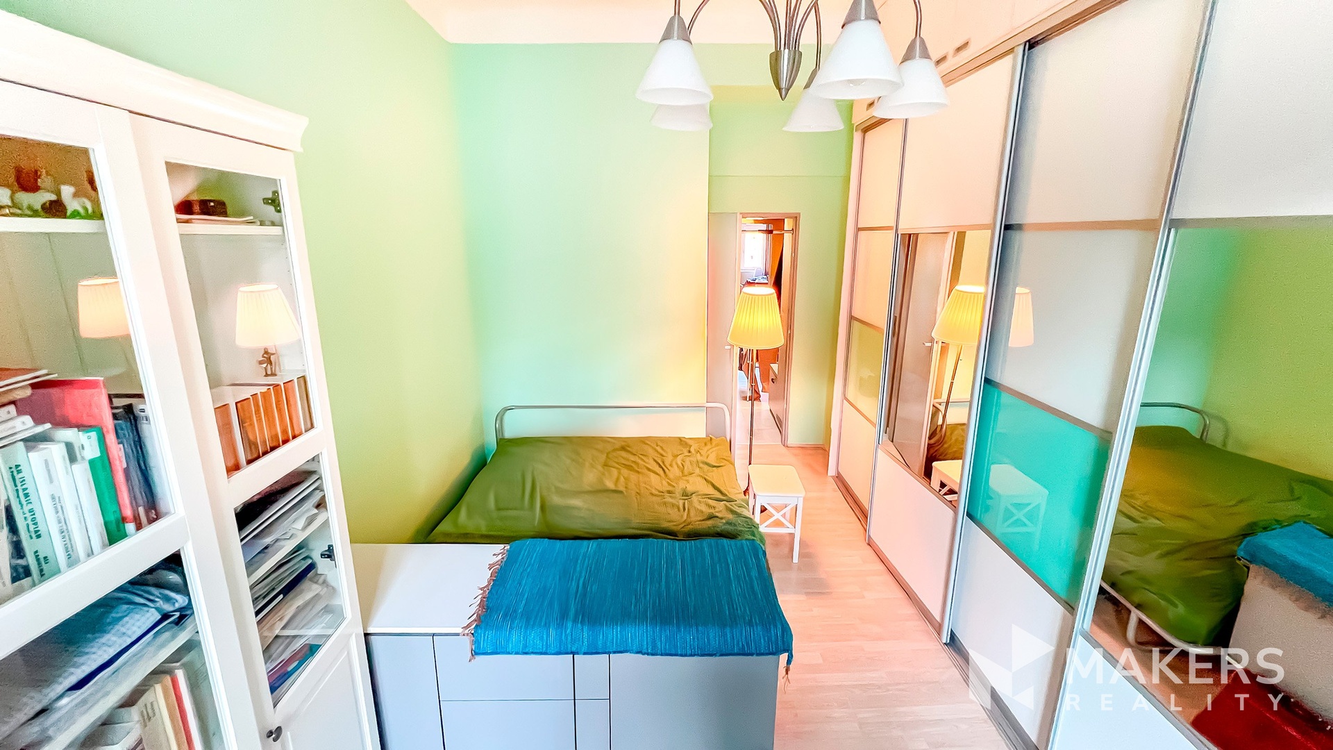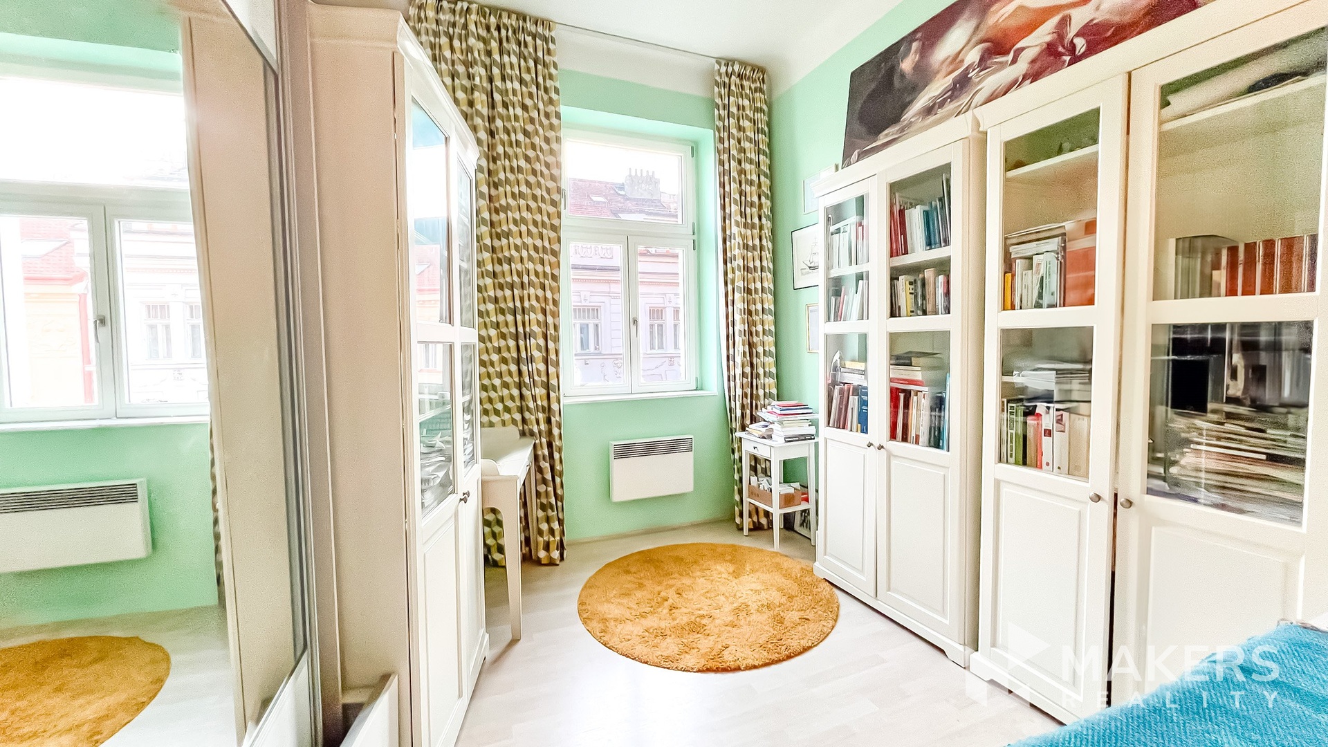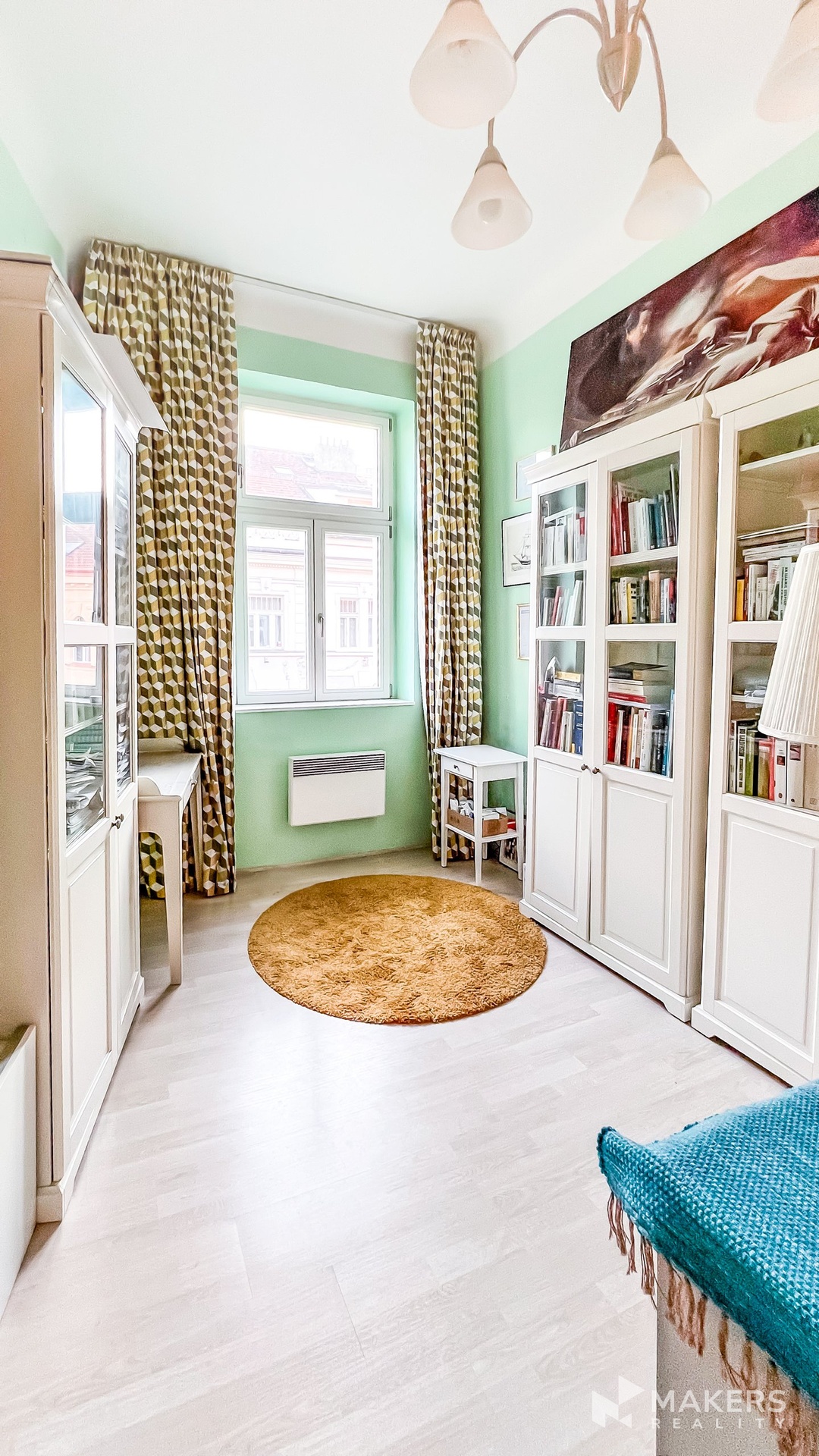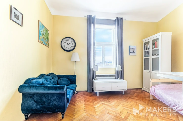We offer for sale an attractive 2+kk apartment with appealing views of Žižkov Television Tower and Parukářka Park. The apartment is located on the 4th floor of a brick building with an elevator in the vibrant Žižkov district.