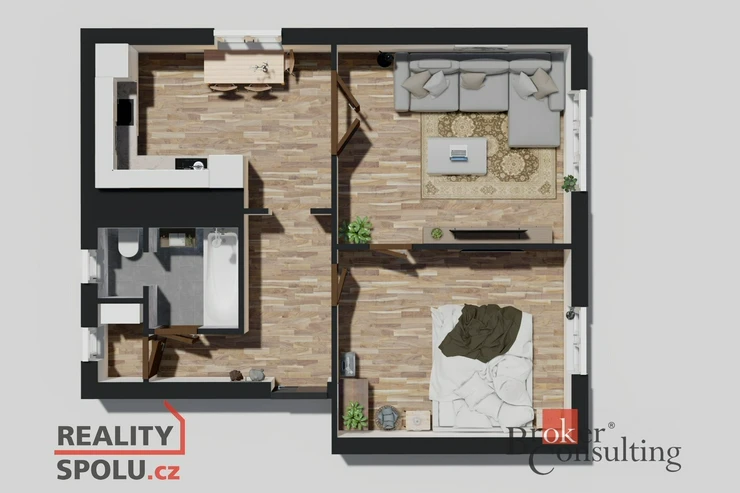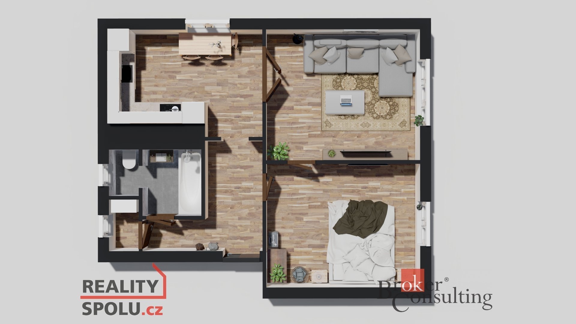 Byt je velmi dobře situován a je připraven jak ke kompletní rekonstrukci, tak k jemné modernizaci. Vše dle vašich představ. Dispozici bytu 2+1 tvoří obývací pokoj, ložnice, samostatná kuchyně, předsíň a koupelna s WC. K bytu dále náleží sklepní kóje cca 1m2 v suterénu budovy.