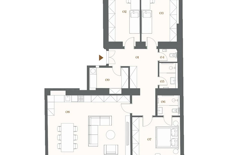 This north / south oriented three-bedroom apartment with a floor area of 135.1 m² is part of the new Bělehradská 29 residential project, which is being created by the complete reconstruction of a Neo-Baroque apartment building from 1910. It is located on the border of Vinohrady and Nusle - in a lively neighborhood with cafes, services, and greenery, just a minute from the Nuselské schody tram stop. Completion is planned for the 3rd quarter of 2026. The floor plan of the apartment on the 2nd floor includes a living room with preparation for a kitchen, three bedrooms, an entrance hall, a practical storage room, a bathroom with a shower, and a separate WC. The unit also includes a cellar space. The equipment includes oak floors, wooden casement windows with double-glazed panes, elegant interior doors, classic Laufen and Grohe sanitaryware in the bathroom, and discreet radiators and electrical installation that do not disturb the overall design of the interior. The apartment will be completed in a fit-out state - ready for immediate move-in.