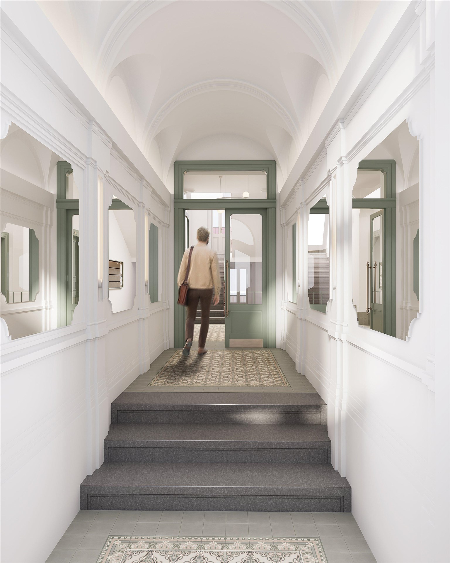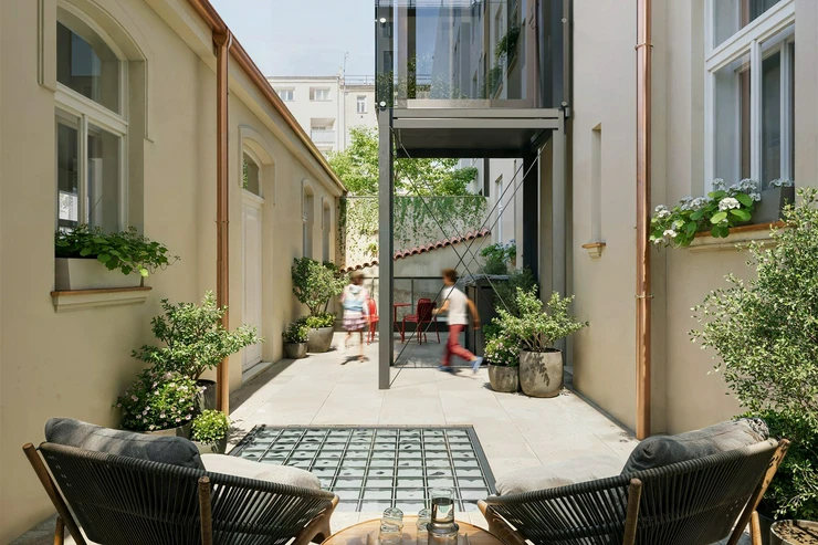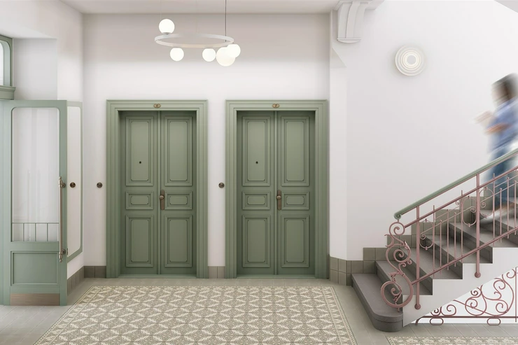 The building will be completely renovated. There will be representative common areas, a modern elevator, a renovated stone staircase with a decorative railing, and new technical facilities. Residents will have access to a sauna, fitness room, bicycle room and stroller room, and a quiet place to sit amongst the greenery in the courtyard. The building is situated on a quiet part of Bělehradská Street, just a few steps from the Nuselské schody tram stop. Popular restaurants such as Solo Bakery, Ô-mai coffee, Las Adelitas, and Da Pietro pizzeria are nearby, and Folimanka and Grébovka parks are also within walking distance. There are pharmacies, schools, fitness centers, and common services in the neighborhood. You can reach the I. P. Pavlova metro station by tram in four minutes, and the city center in ten.