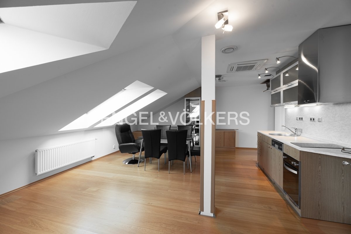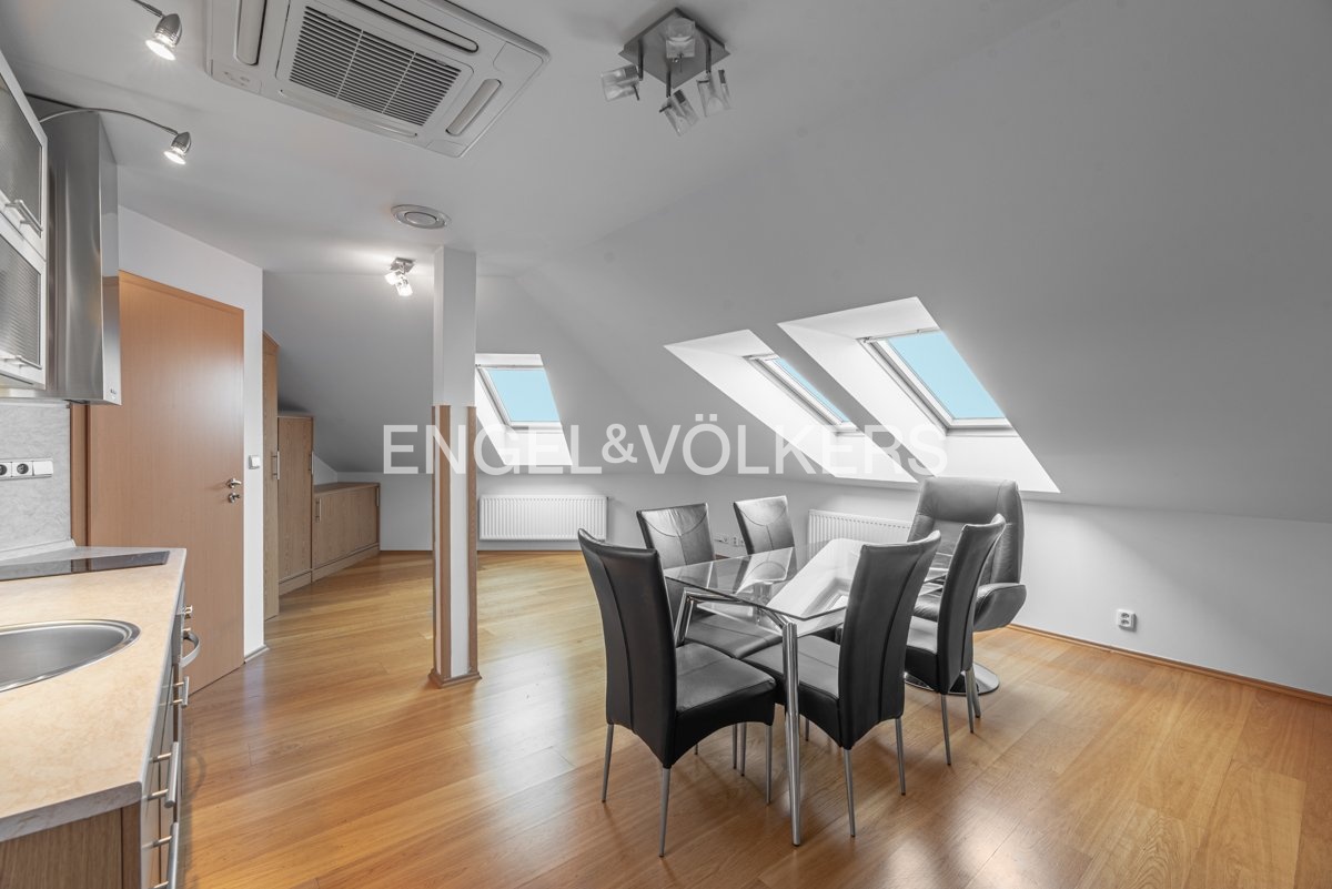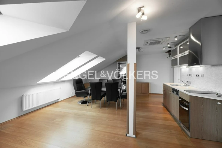 We offer for sale a duplex apartment with a layout of 3 rooms + kitchenette and a usable area of 101 sqm, located on the 4th and 5th floors of a well-maintained building from 2006. It offers not only a thoughtfully designed layout but also a terrace of 35 sqm, oriented to the southwest, west, and northwest – an ideal place for relaxation or summer gatherings with friends.