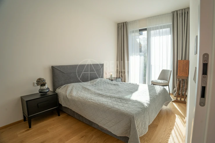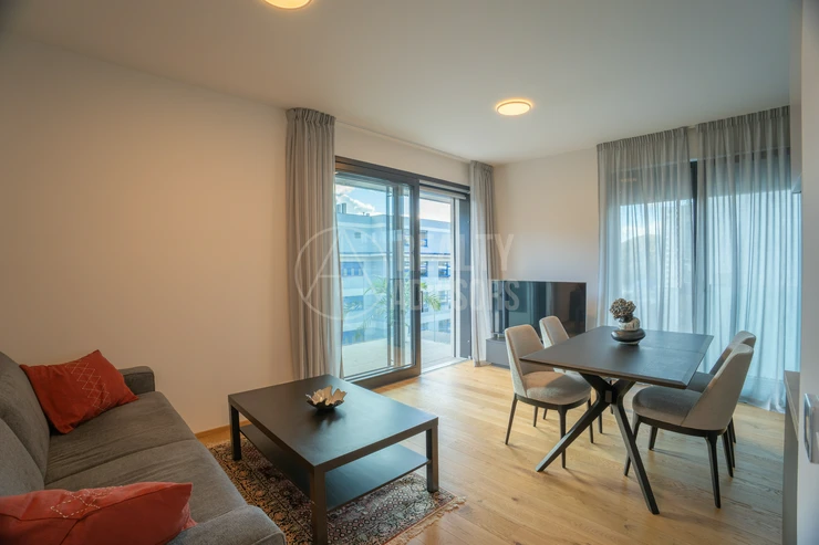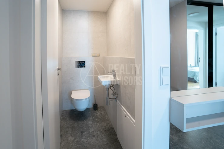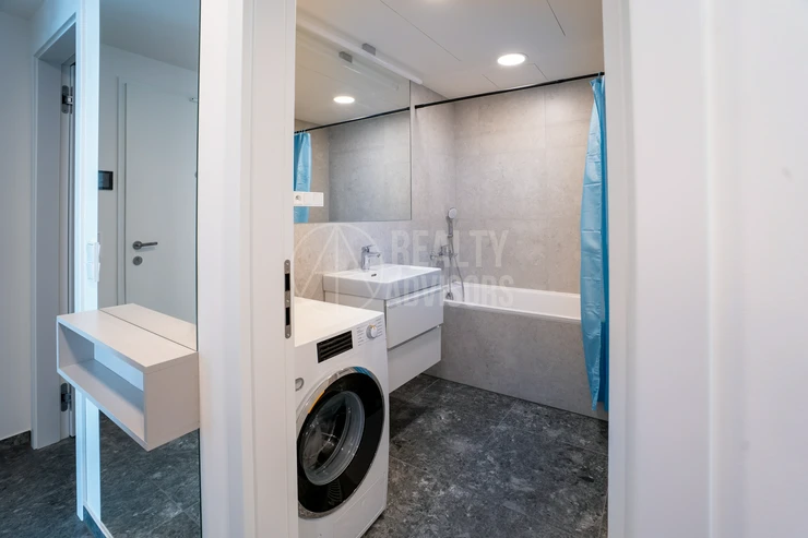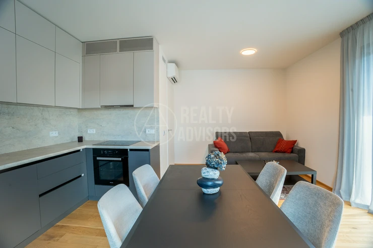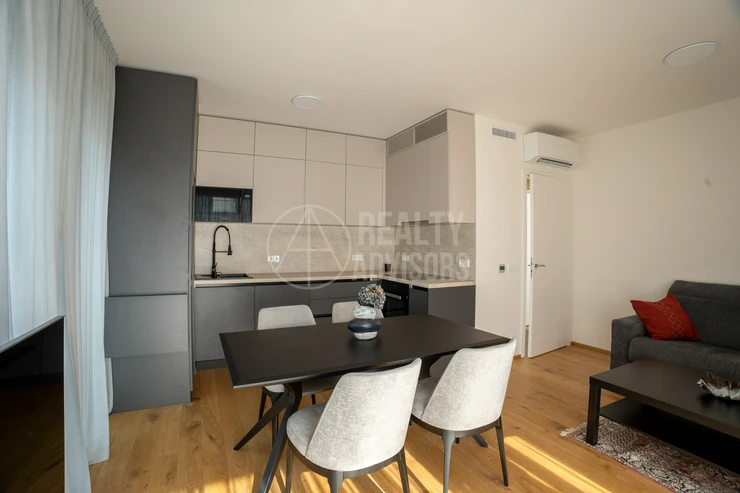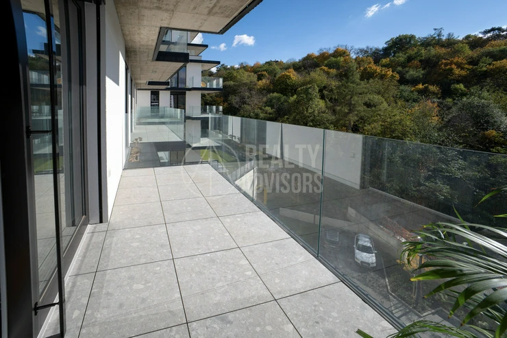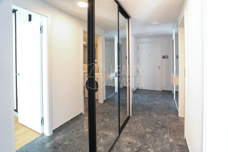 Luxurious Fully Furnished 3+kk Apartment with a total area of 80.4 m² and two balconies (9.9 m² and 9 m²) is located in the new residential project Ahoj Vanguard in Prague’s Modřany district. The sale includes a cellar (1.9 m²) and a garage parking space. The apartment comes fully equipped with designer furniture and premium Miele kitchen appliances and is ready for immediate move-in. Residents enjoy free access to an exclusive spa & wellness centre, an 18-metre swimming pool, and a rooftop terrace with stunning nature views and a barbecue area. The southwest orientation ensures plenty of natural daylight and a peaceful view of the surrounding greenery. The neighbourhood offers a perfect balance between city life and nature — with the Vltava riverside cycling path, Hodkovičky golf course, Malá Chuchle mini-zoo, as well as schools, kindergartens, and a motorboat rental all nearby. Modřany is one of Prague’s fastest-developing residential areas, offering excellent transport links and a truly high standard of living