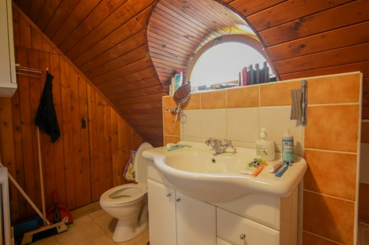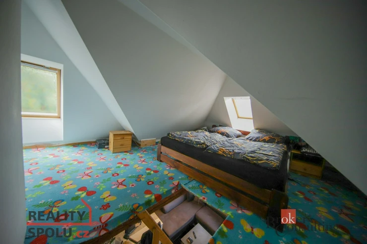 Hlavní obytný prostor tvoří otevřená kuchyň s jídelnou a obývacím pokojem, díky čemuž působí celý byt vzdušně a velmi útulně. Dále zde najdete samostatný pokoj (aktuálně využívaný jako dětský), menší komoru vhodnou jako šatnu a koupelnu s WC.Po schodech se dostanete do horního patra, kde je další místnost – nyní využívaná jako ložnice.