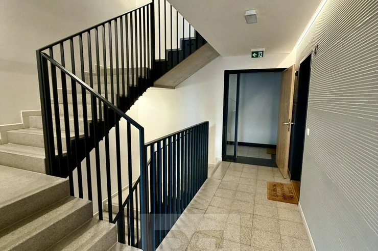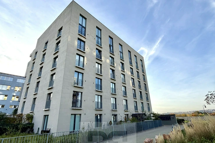 The location offers excellent accessibility – the Odlehlá bus stop is directly in front of the building, the Krejcárek tram stop is just a few minutes away, and you can easily walk to the Vysočanská or Palmovka (line B) metro stations.