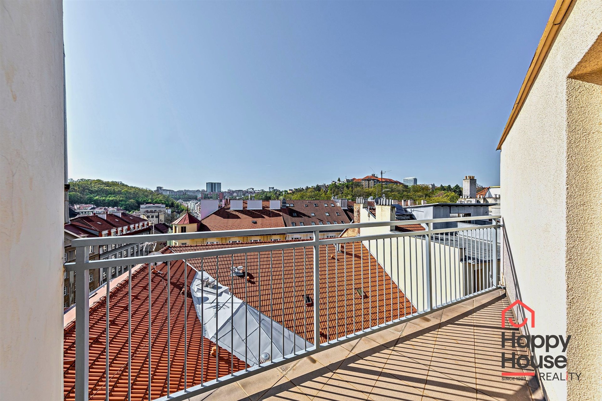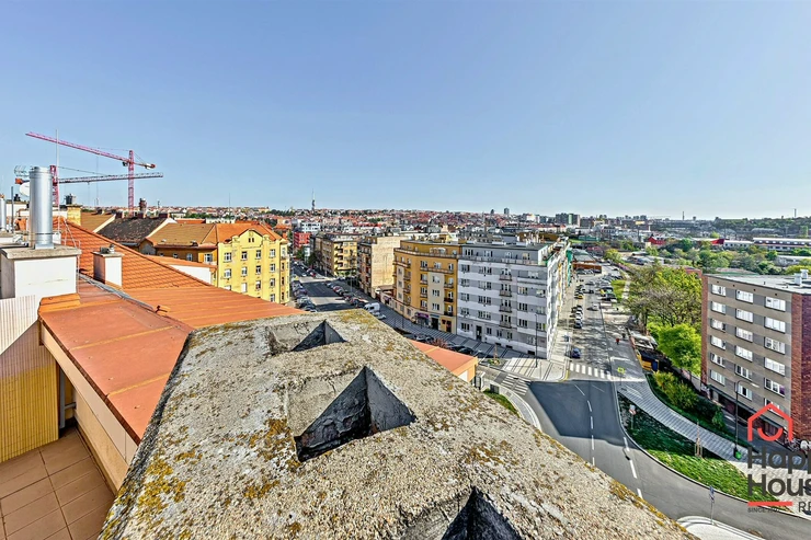 Beautiful, two bedroom duplex apartement (110sqm) for sale with a terrace and balcony on the 6th floor of a brick house with an elevator in Prague 4 - Nusle. They are 2 bedrooms - one bedroom is downstairs and the upper bedroom has access on the teracce(divided inti 2 parts), threre is also 2nd bathroom with shower. There is very large living space with balcony and stairs to the upper floor. The kitchen has build-in fridge, freezer, ceramic hob, oven, dishwasher. There are two bathrooms (in the hall and next to the bedroom) with a bathtub, shower and toilets. Gas heating. Laminated floors and tiles. Parking on the street - zones.