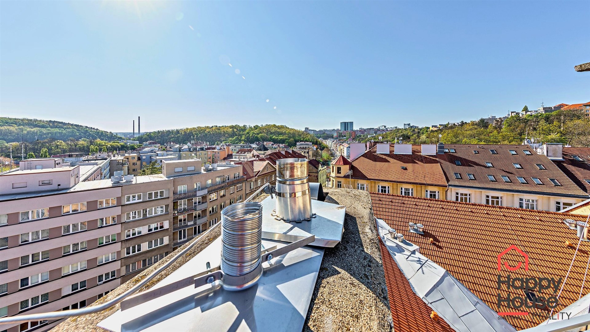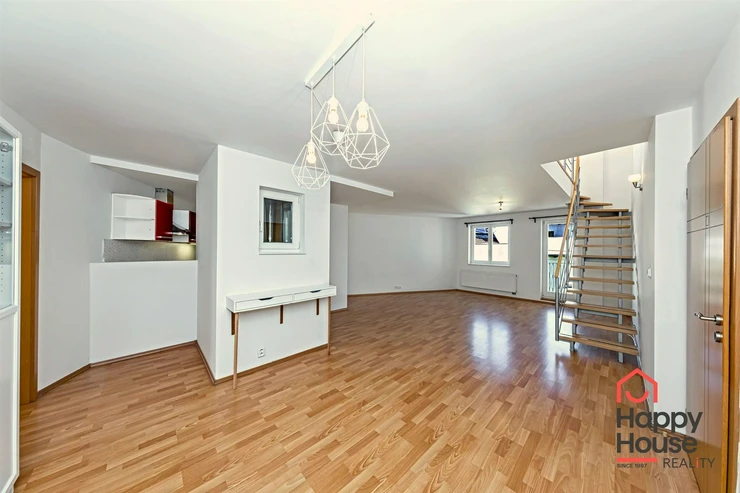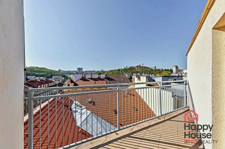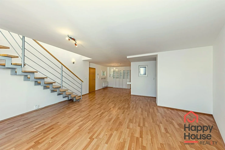 We offer for sale a spacious duplex apartment 3+kk with a total area of approx. 110 m², featuring a 21.8 m² terrace and a 1.8 m² balcony, located on the 6th floor of a brick building with an elevator.