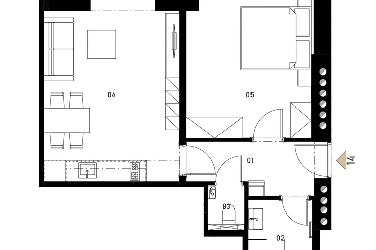 Non-residential unit No. 14 with one bedroom and total area of 54.4 m² is located in a carefully renovated apartment building, on the 1st floor.