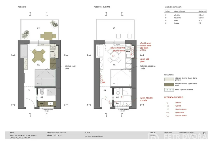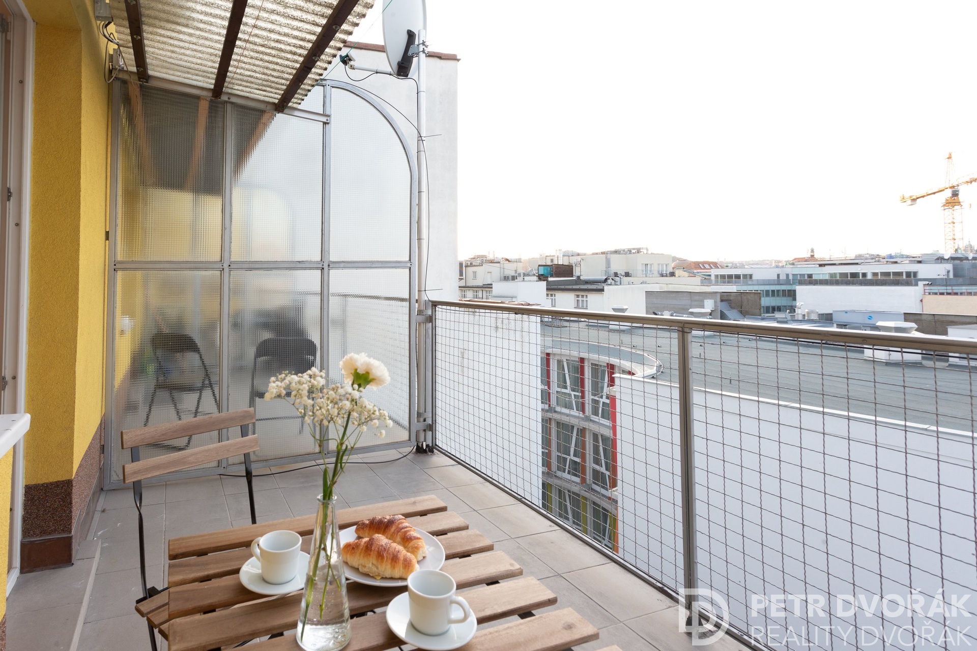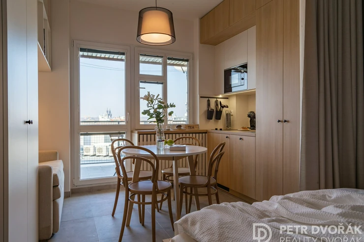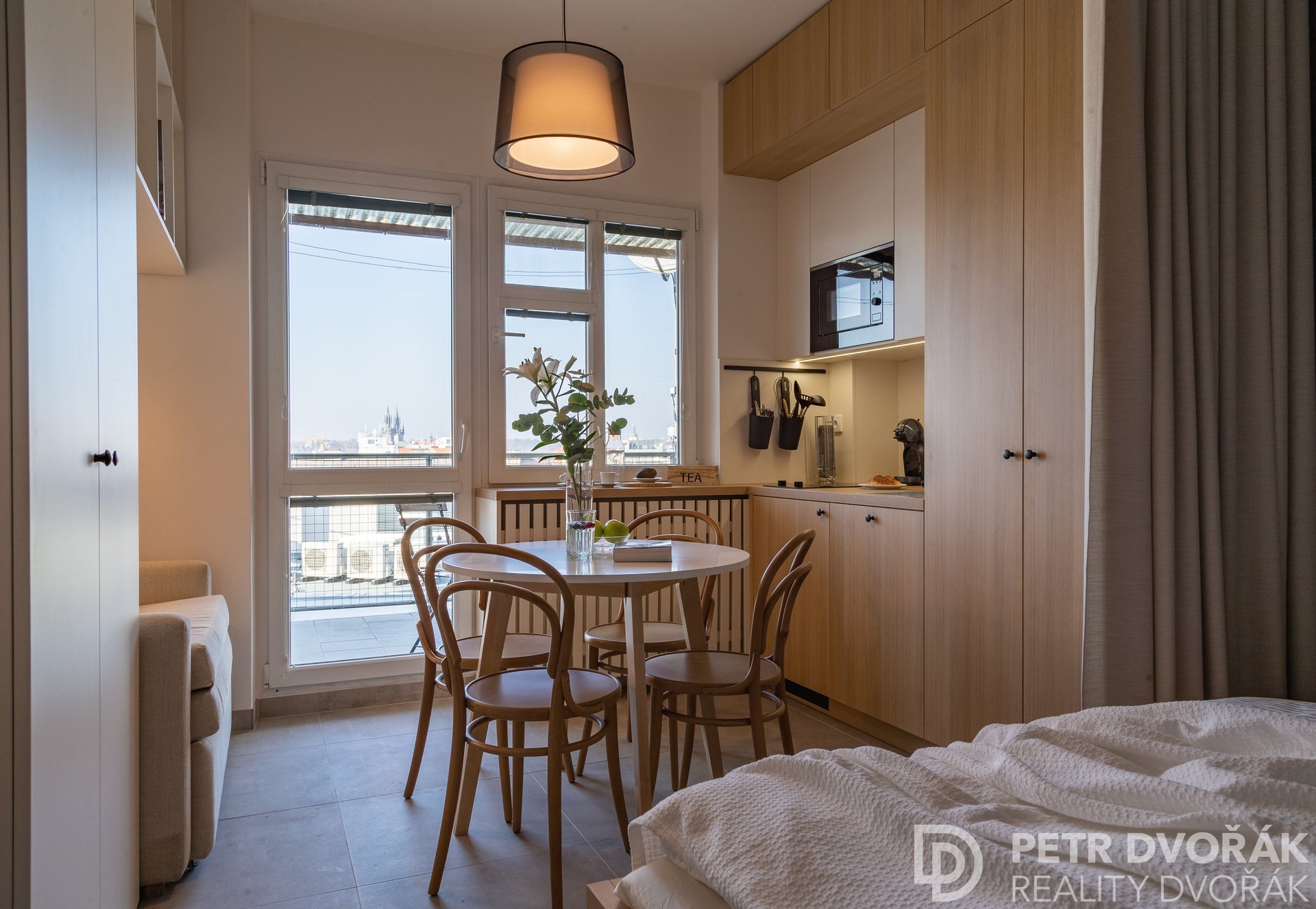 Sale of a newly renovated air-conditioned studio apartment (27 m²) with a terrace and panoramic views of Prague
