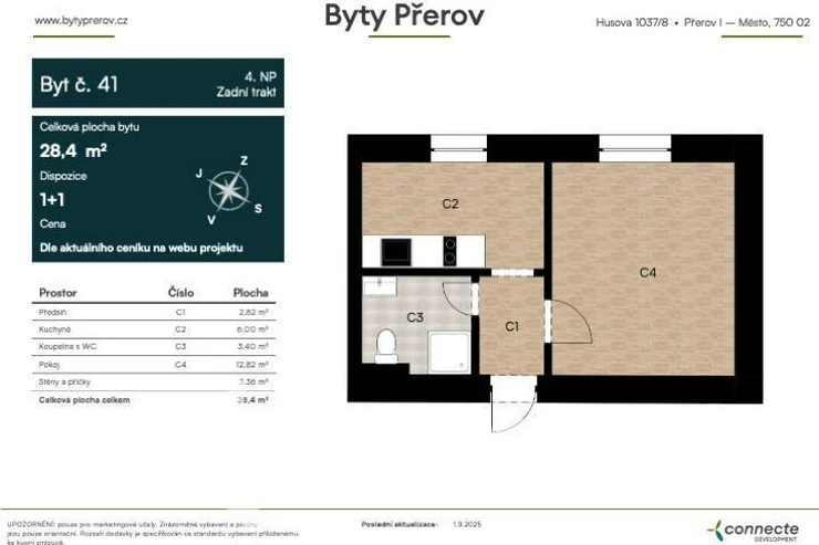 As part of the Byty Přerov residential project, we exclusively offer for sale a modern 1+1 flat with a total area of 28.4 m2, located on the 4th floor. The flat is offered into personal ownership.