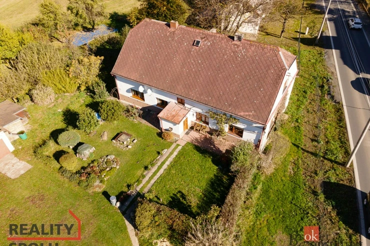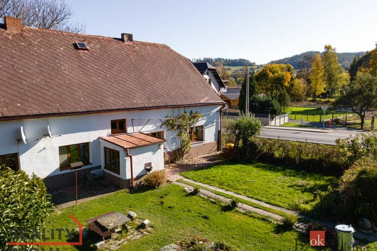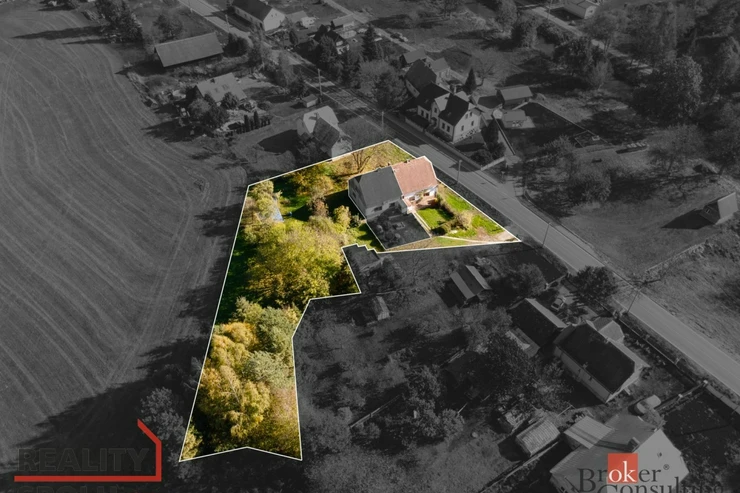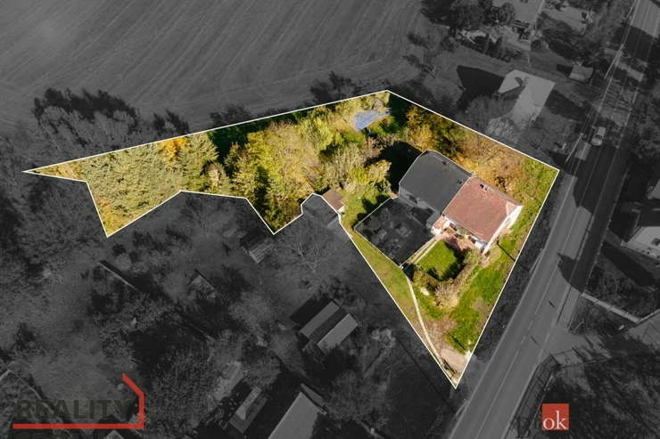 Součástí prodeje je polovina rodinného domu a rozsáhlý pozemek o výměře 2 475 m².
