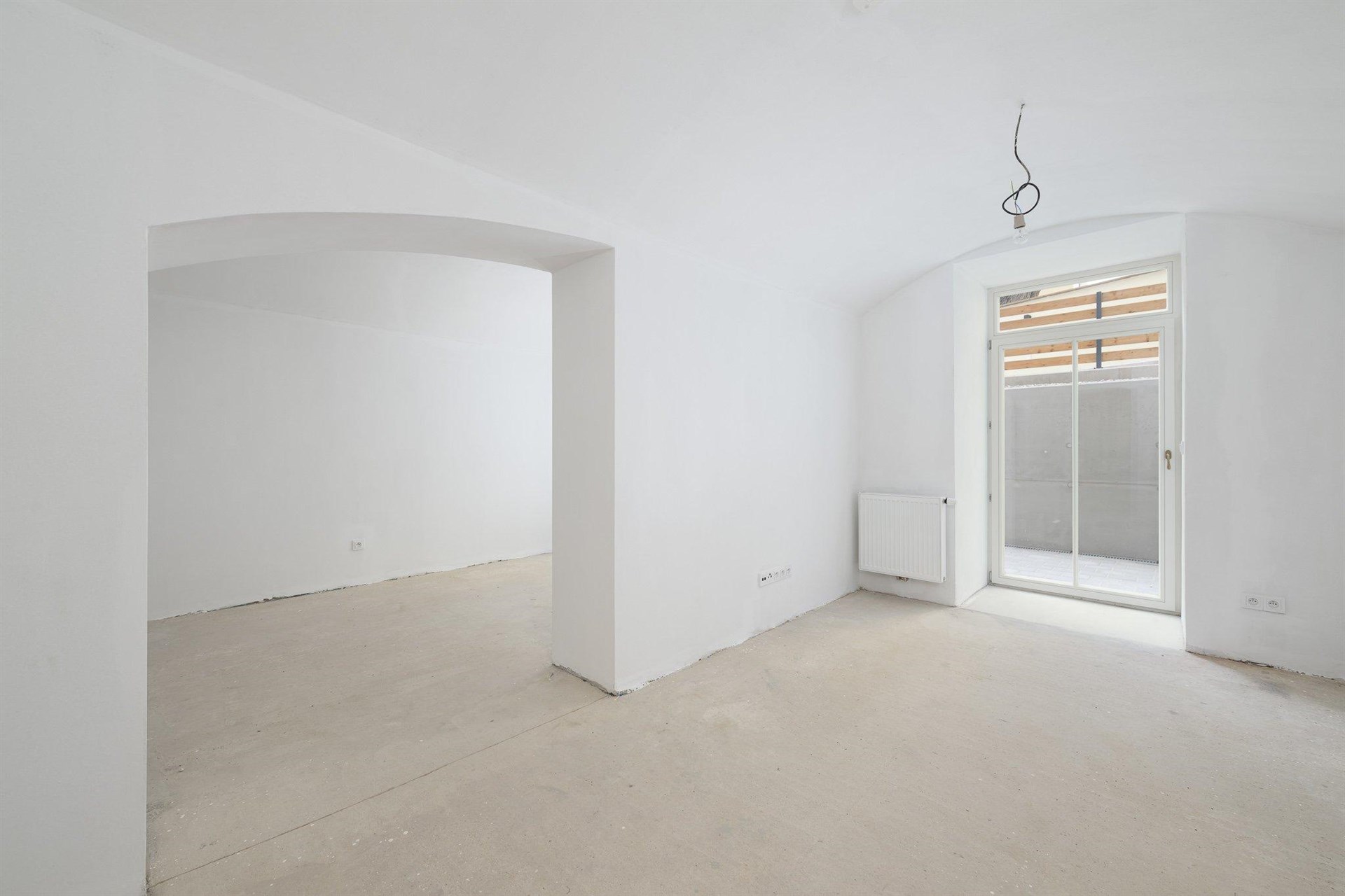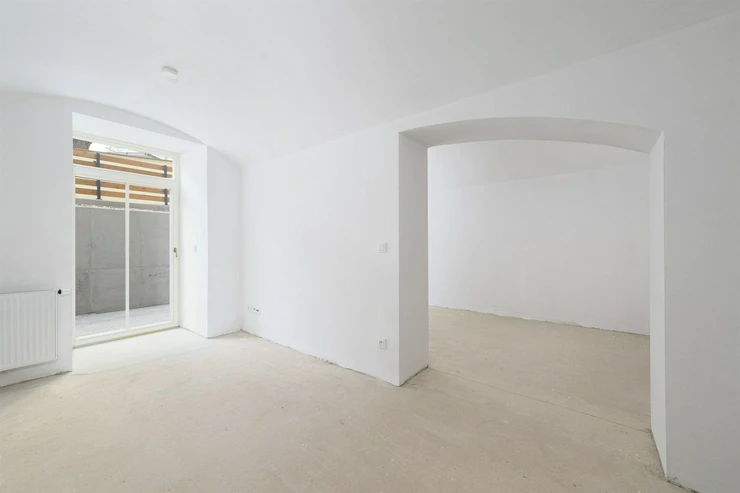 This stylish one-bedroom apartment has a floor area of 46.8 m² and boasts a private front garden. Ideal for those who want to live in the popular Prague neighborhood of Letná - and at the same time have peace, space, and the opportunity to complete the interior according to their own design ideas. The basement unit offers a thoughtful solution for a modern lifestyle: an open living space with preparation for a kitchen, a separate bedroom and a bathroom. It also includes a private front garden - the perfect place for weekend brunches or evenings under the stars. The white wall design allows the future owner to fine-tune the interior exactly to their wishes. The building has undergone a complete renovation in the spirit of the original Letná architecture - with an emphasis on detail, materials, and quality of workmanship.