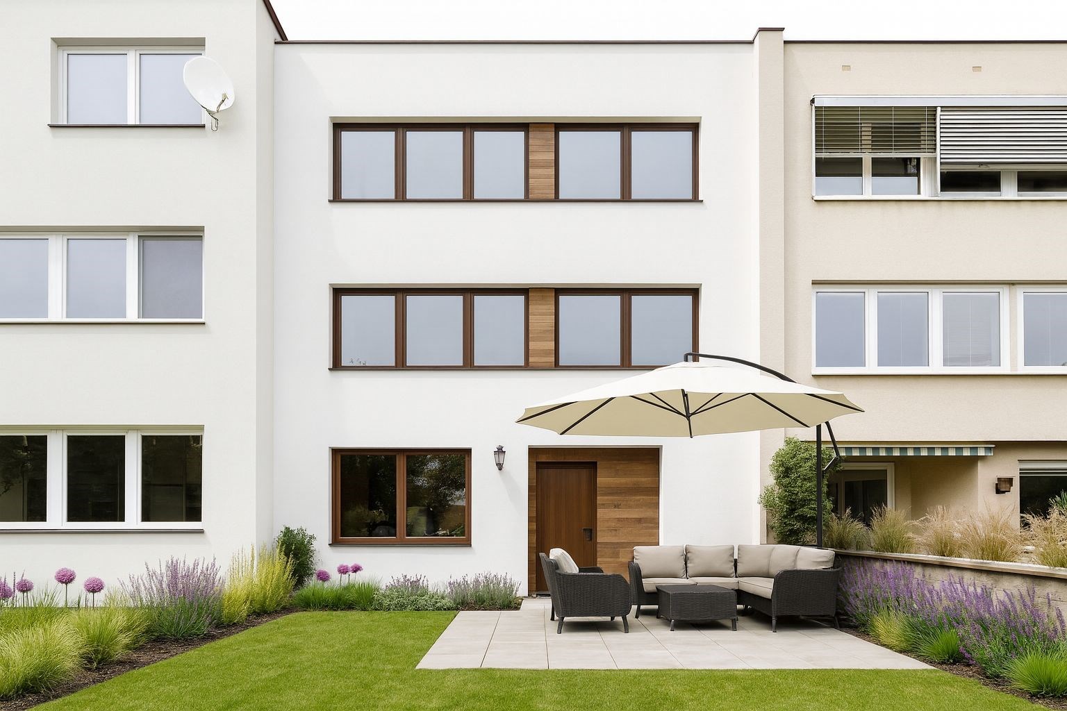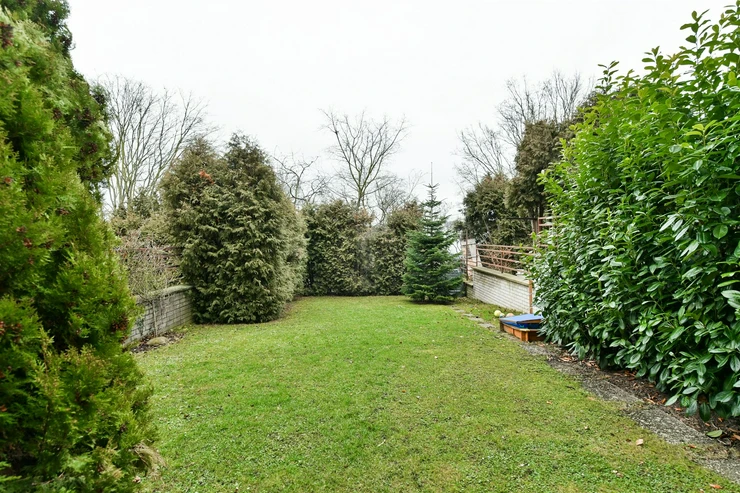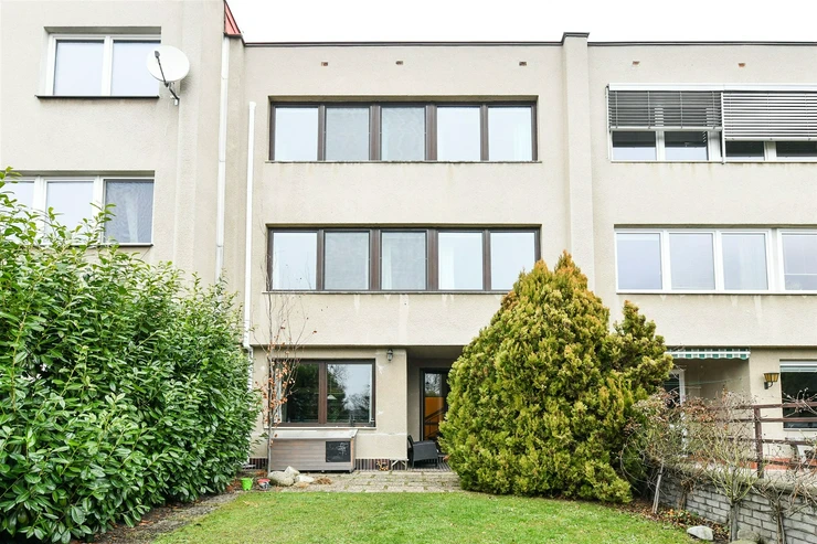 Sun rays, an open view of the city, and a spacious interior make this house an ideal place for modern family living. This spacious row house with a south-oriented garden and an unobstructed view of Prague offers peaceful family living in greenery, just a few steps from the popular Ladronka park.