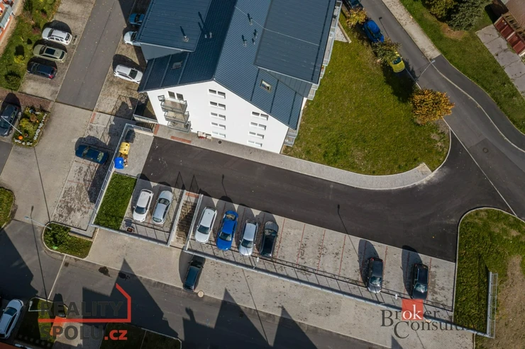 K bytu je možné pořídit vlastní garáž přímo u domu, což znamená žádné starosti s parkováním a ochrana vozu před nepřízní počasí, zároveň možnost uskladnění sezónních věcí.