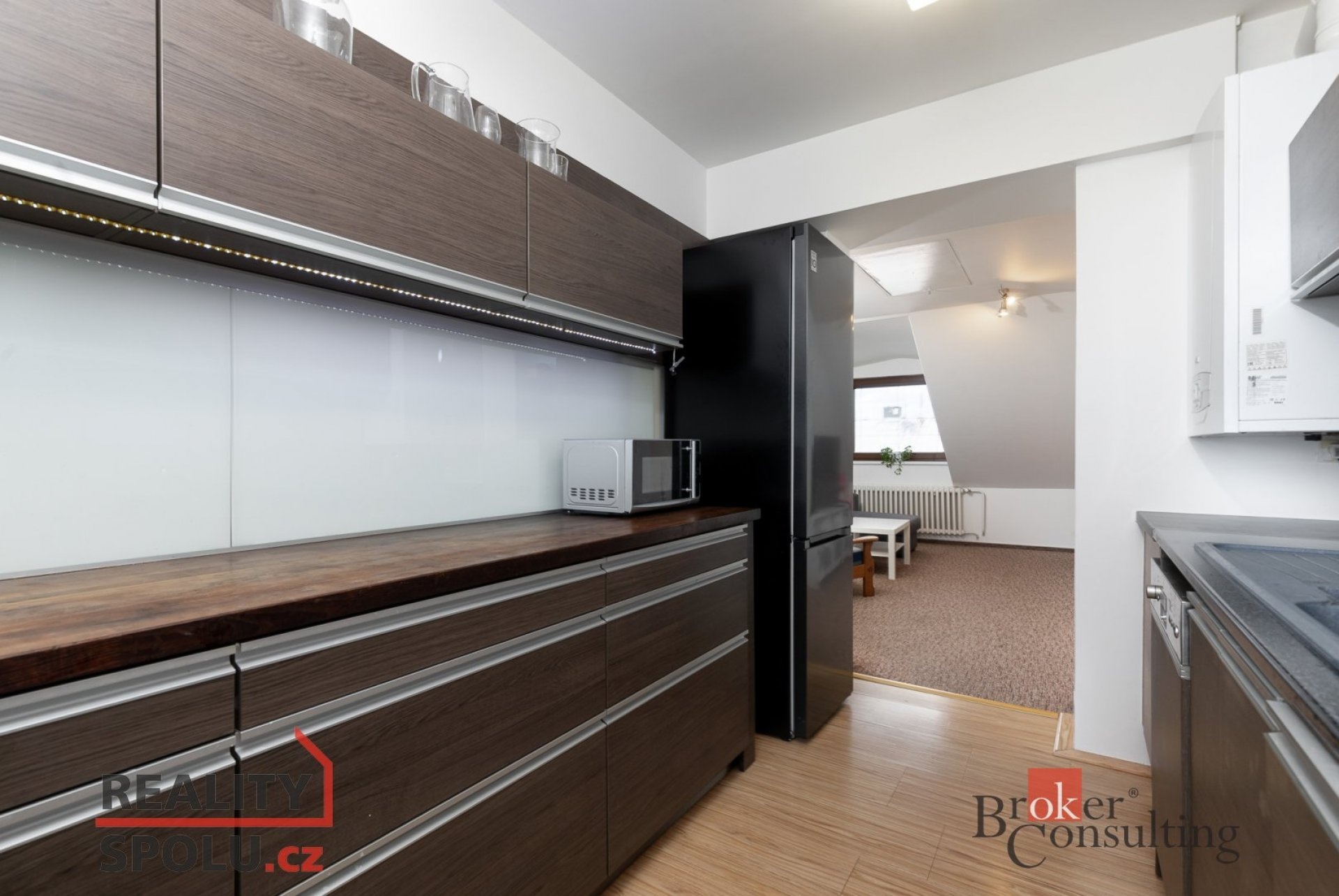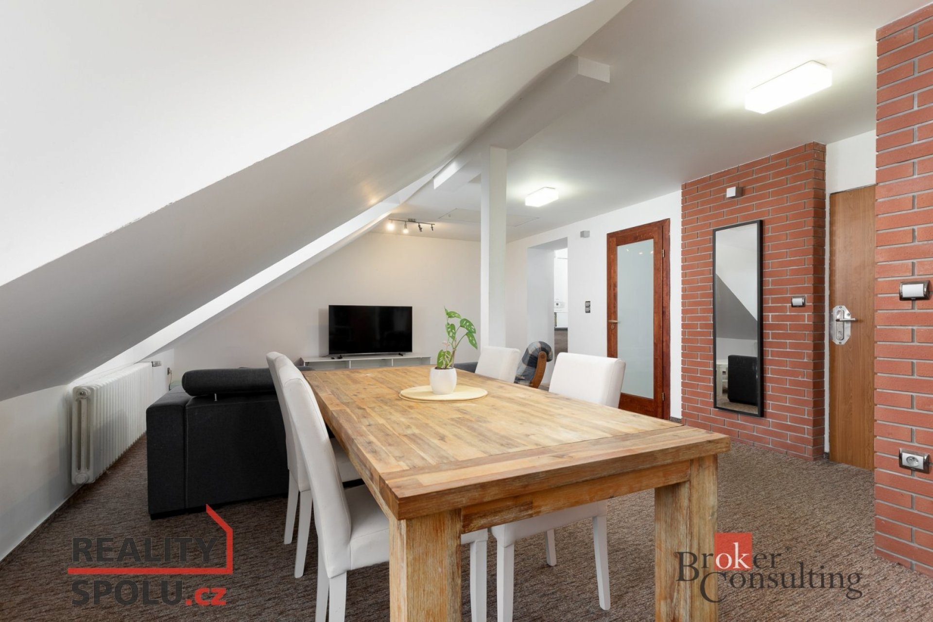 Nabízíme komfortní bydlení v prostorném, velmi prakticky řešeném bytě o dispozici 3+1 s užitnou plochou 93 m², nacházející se v posledním patře cihlového domu ve výborné lokalitě. V domě se nachází pouze 7 bytů.
