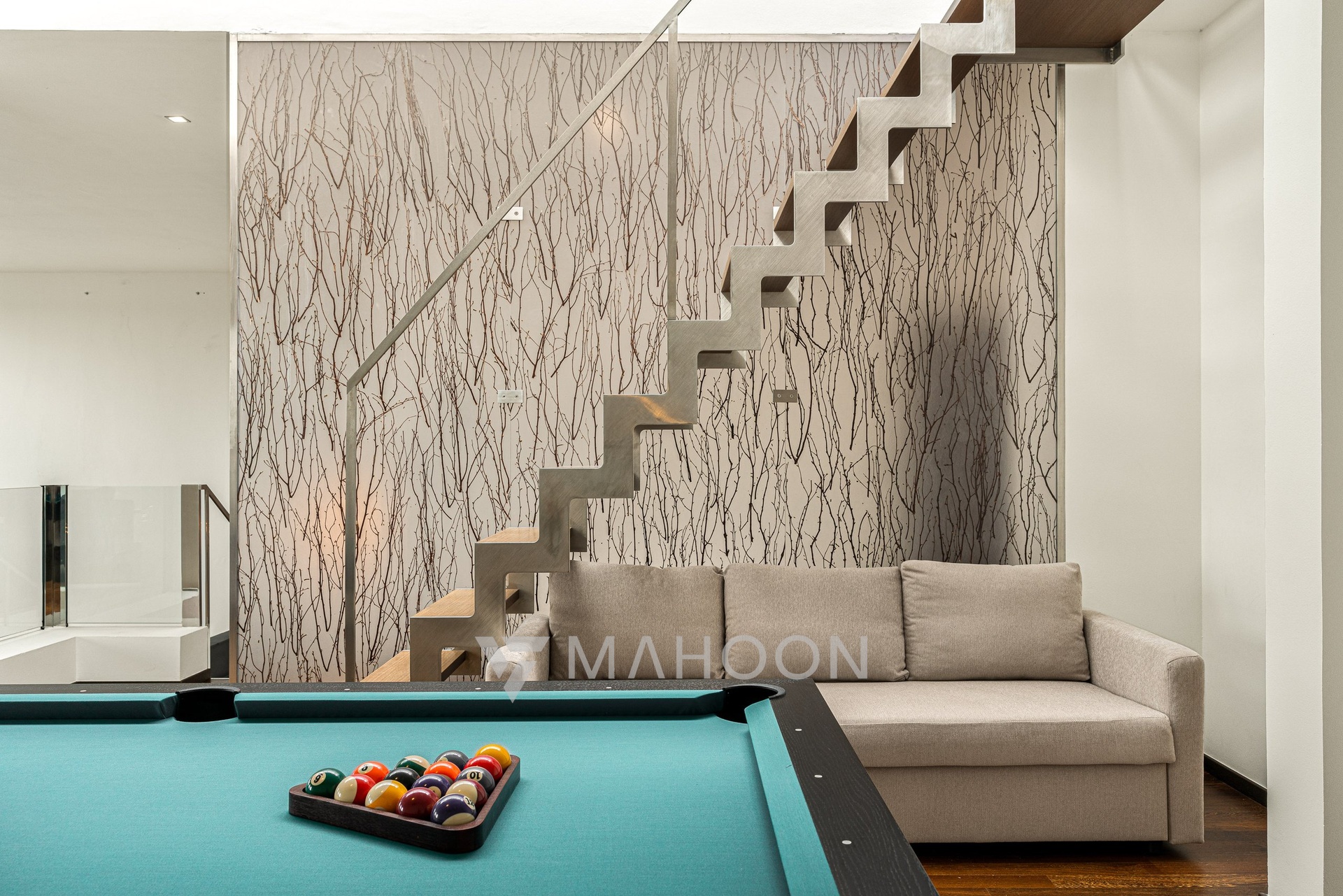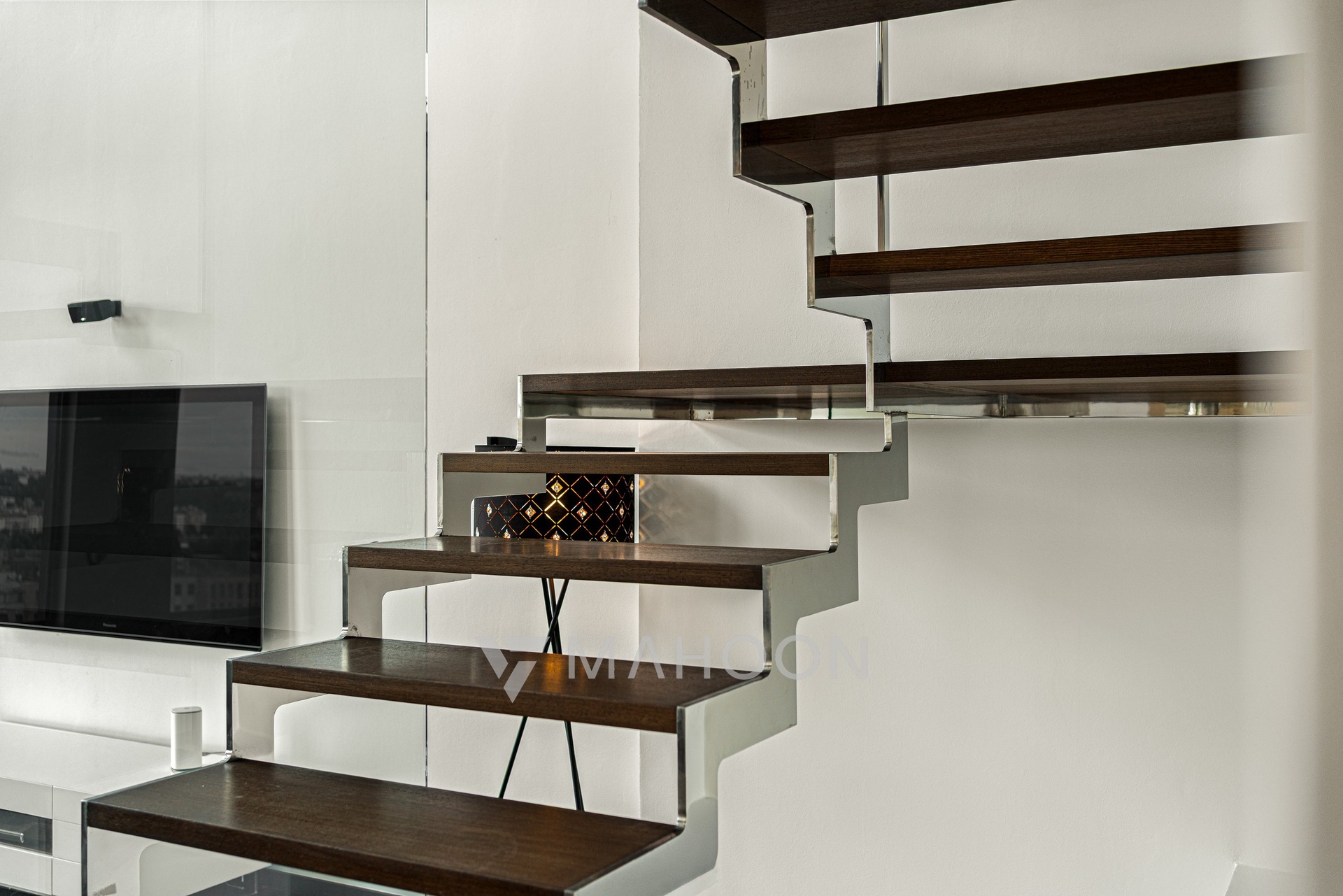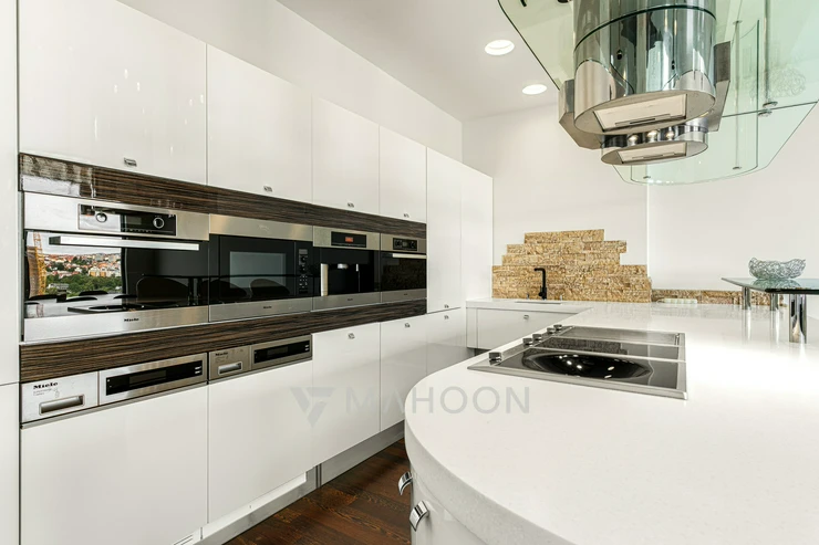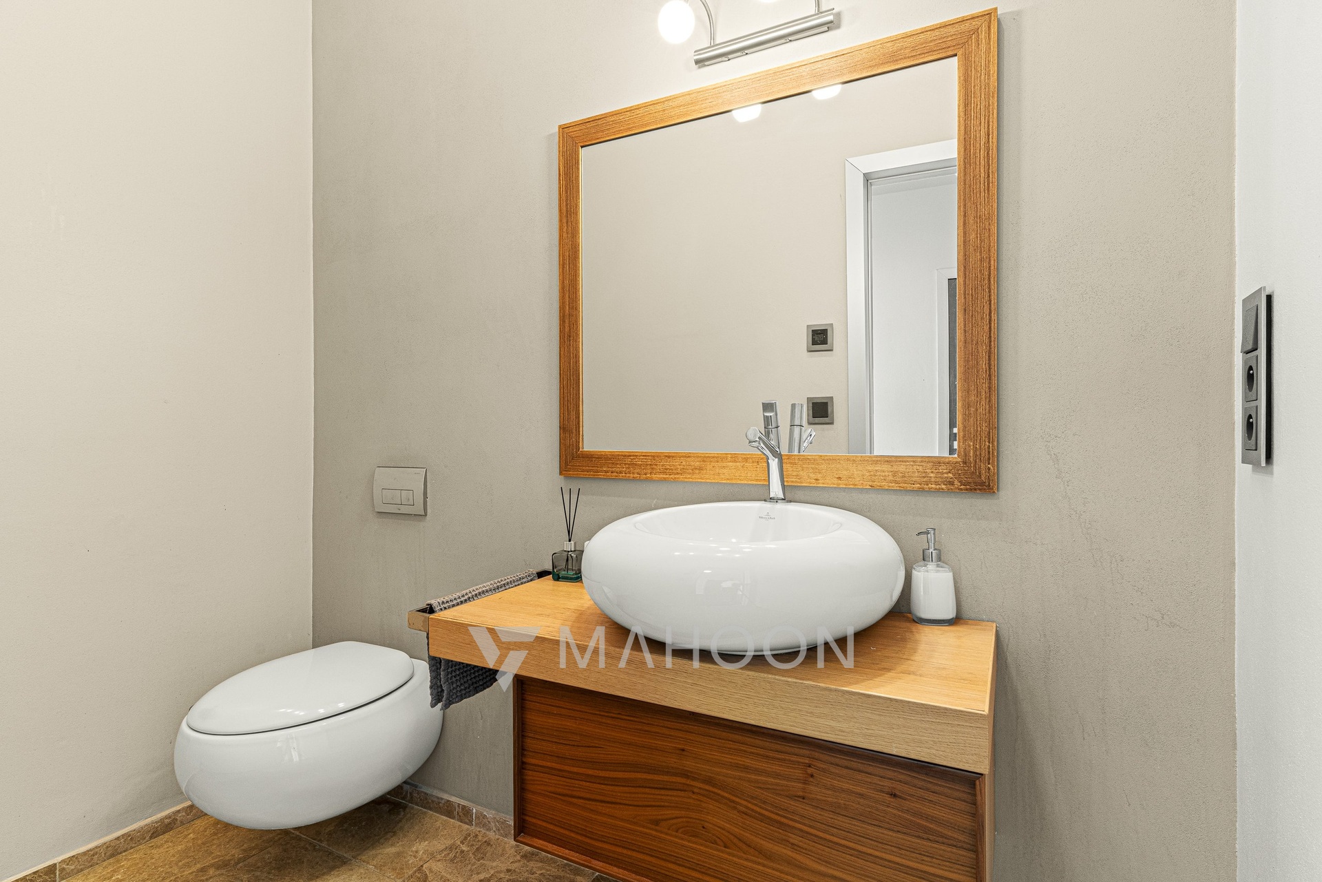 The studio offers a generous layout of 3+kk, two separate entrances, a sauna, a bathroom with a jacuzzi and a roof terrace with automatic irrigation. The interior is designed with an emphasis on detail - from solid wooden floors, mosaics and marble, to distinctive design elements.