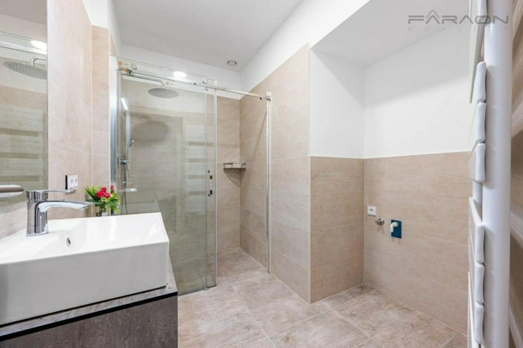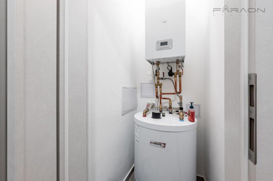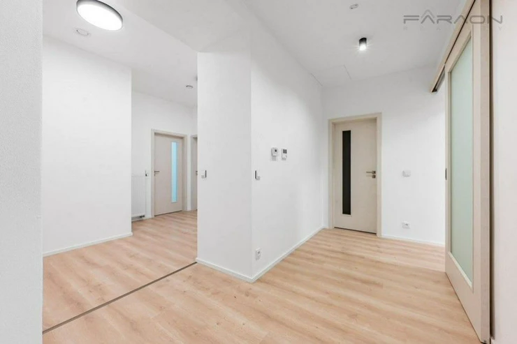 The apartment's equipment includes a fully equipped kitchen with an electric oven and induction hob, a dishwasher and a built-in refrigerator, and there is a separate pantry with shelves in the kitchen. The floor is vinyl in the hallway and in the rooms, and ceramic tiles in the kitchen and bathroom. The living room overlooks the quiet courtyard and a shared terrace. Because this is an apartment on a lower floor, the windows in the bedrooms are equipped with a special artificial lighting system imitating daylight, the supply of fresh and clean air is ensured by recuperation, and one bedroom also has a custom-made built-in wardrobe. AvailableThere is also a cellar in the basement of the house.