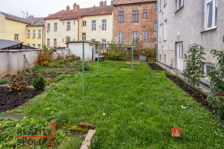 K bytu náleží podíl na zahradě za domem, kde je možné mít vlastní záhonek nebo posezení. Součástí prodeje jsou také dva prostorné sklepy, každý o velikosti 8,7 m² – jeden z nich vybavený dílnou. K dispozici je rovněž prostorná zamykatelná kóje na půdě.